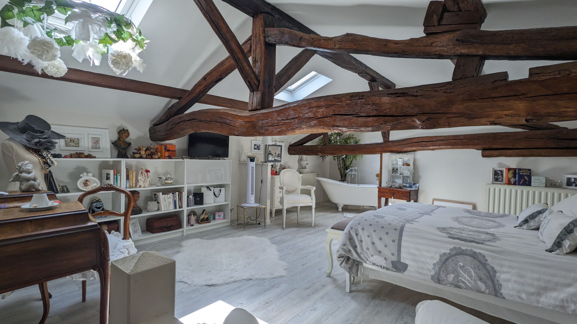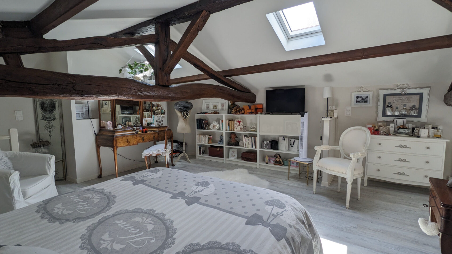 - A l'étage, deux belles chambres en mansarde dont une avec dressing et salle de bains en-suite et une mezzanine complètent cet ensemble charmant rénové et décoré avec goût.
