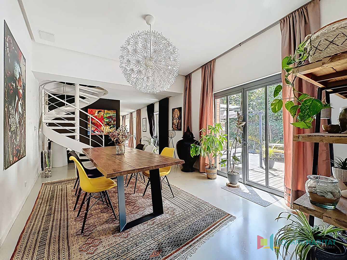 .Une vaste pièce de vie double de plus de 60m2 avec un accès de plain pied à la terrasse et au jardin sans vis-à-vis, exposée Sud et Ouest et disposant d'une cheminée au gaz permettant de créer un environnement chaleureux l'hiver.