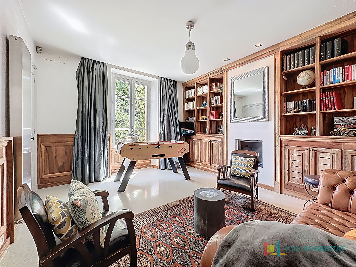 .Une bibliothèque / salle de jeu qui peut se transformer en chambre avec sa cheminée privée,