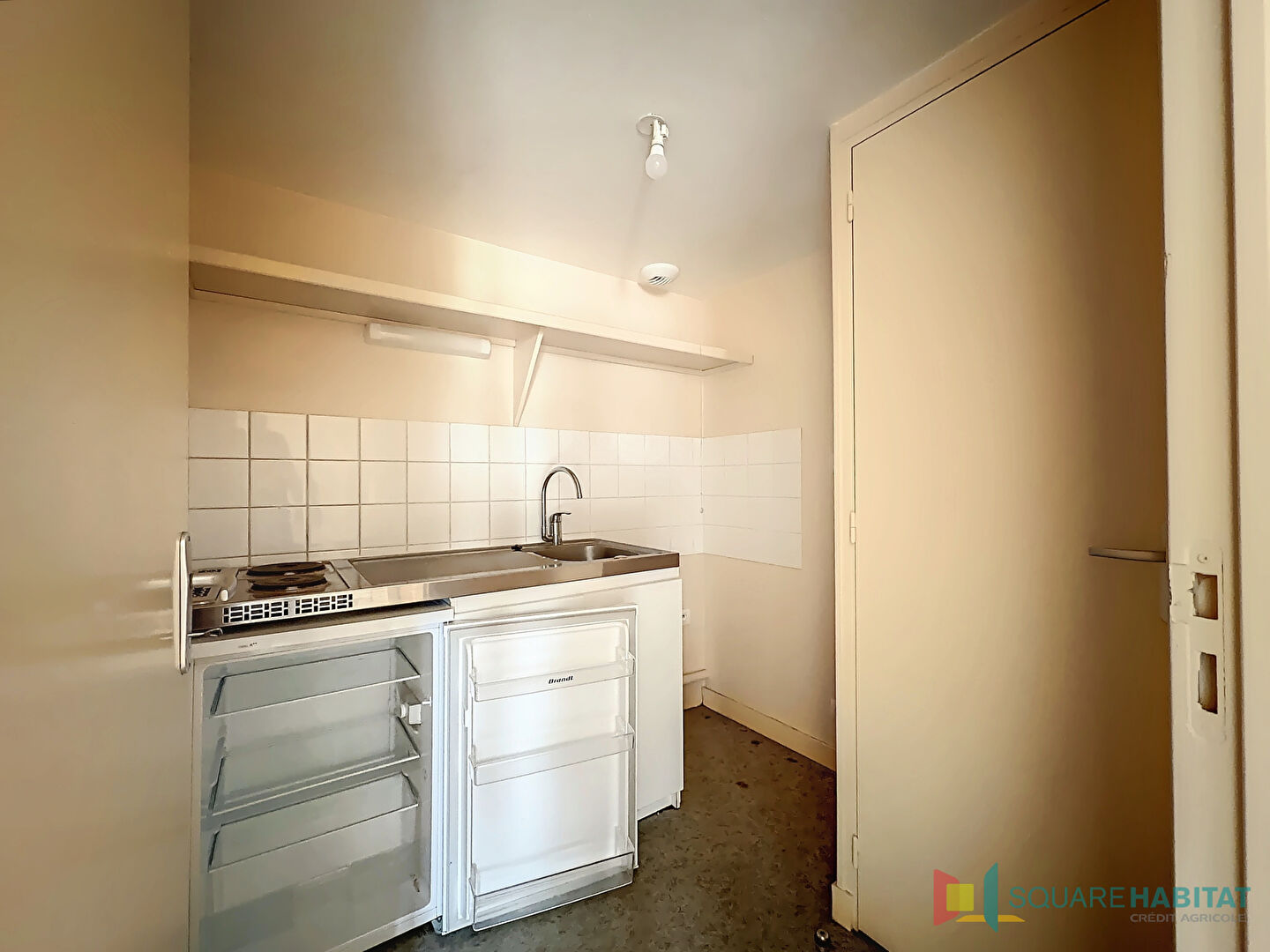 Appartement T2 comprenant : une entrée avec placard et coin kitchenette d'environ 20m2 exposé Sud, coin toilette et lavabo, une chambre de 12 m2 avec sa salle d'eau attenante.
