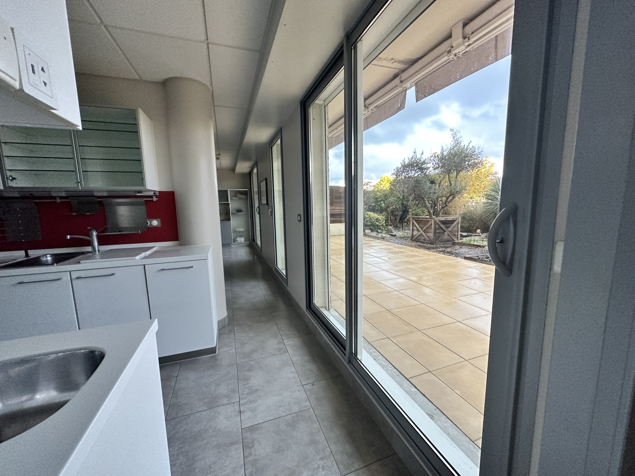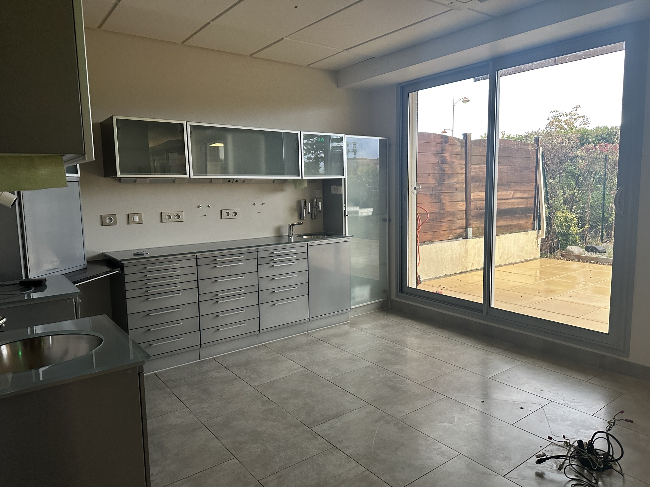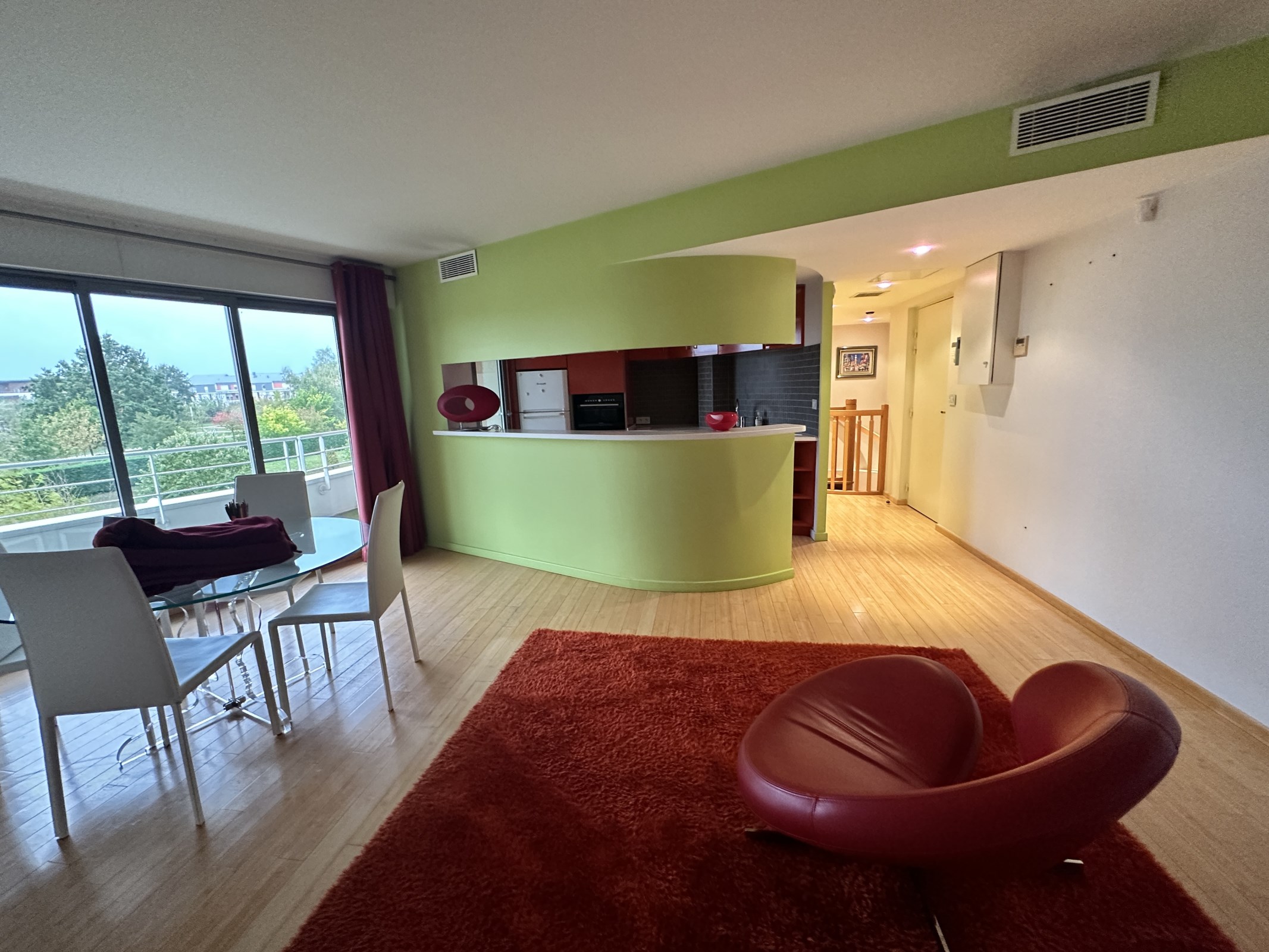 A l'étage, un plateau aménagé en appartement comprenant un palier donnant sur une pièce à usage de bureau, une cuisine ouverte sur séjour, une salle d'eau, un sanitaire séparé et des rangements.