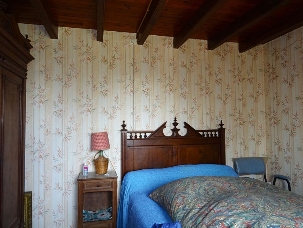 Maison: salle à manger avec cheminée et poêle, salon avec cheminée et poêle, cuisine, 4 chambres, salle d'eau, wc, cellier.