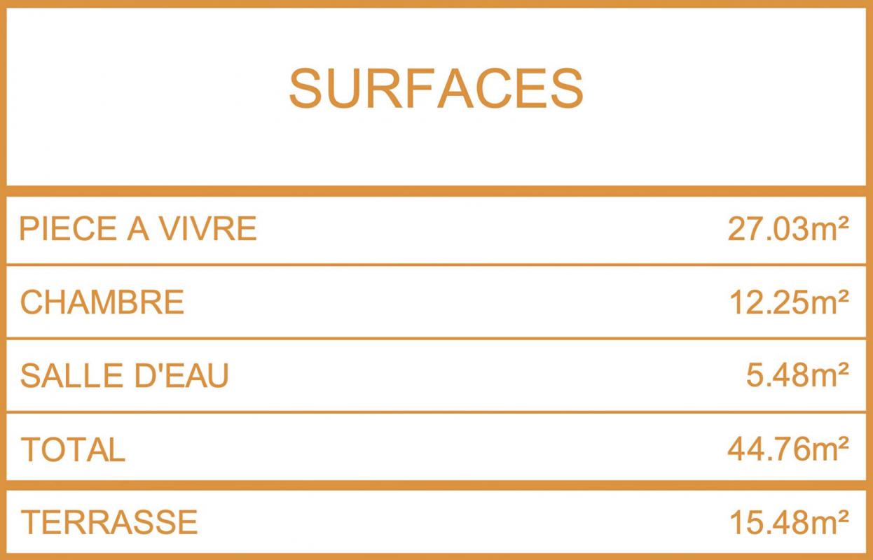 VENTURINI Sylvie vous propose un appartement conforme à la norme RE2020, de type T2, d'une surface habitable de 44,76 m², comprenant une chambre. Situé au 1er étage du bâtiment A, avec une exposition OUEST, cet appartement offre :