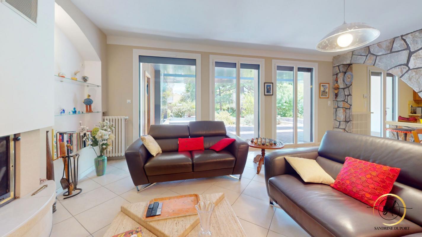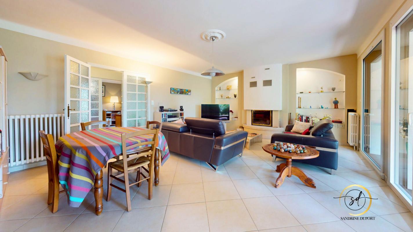 - La belle pièce de vie principale de + de 31m2 lumineuse avec cheminée donnant sur une grande terrasse en bois avec jacuzzi
