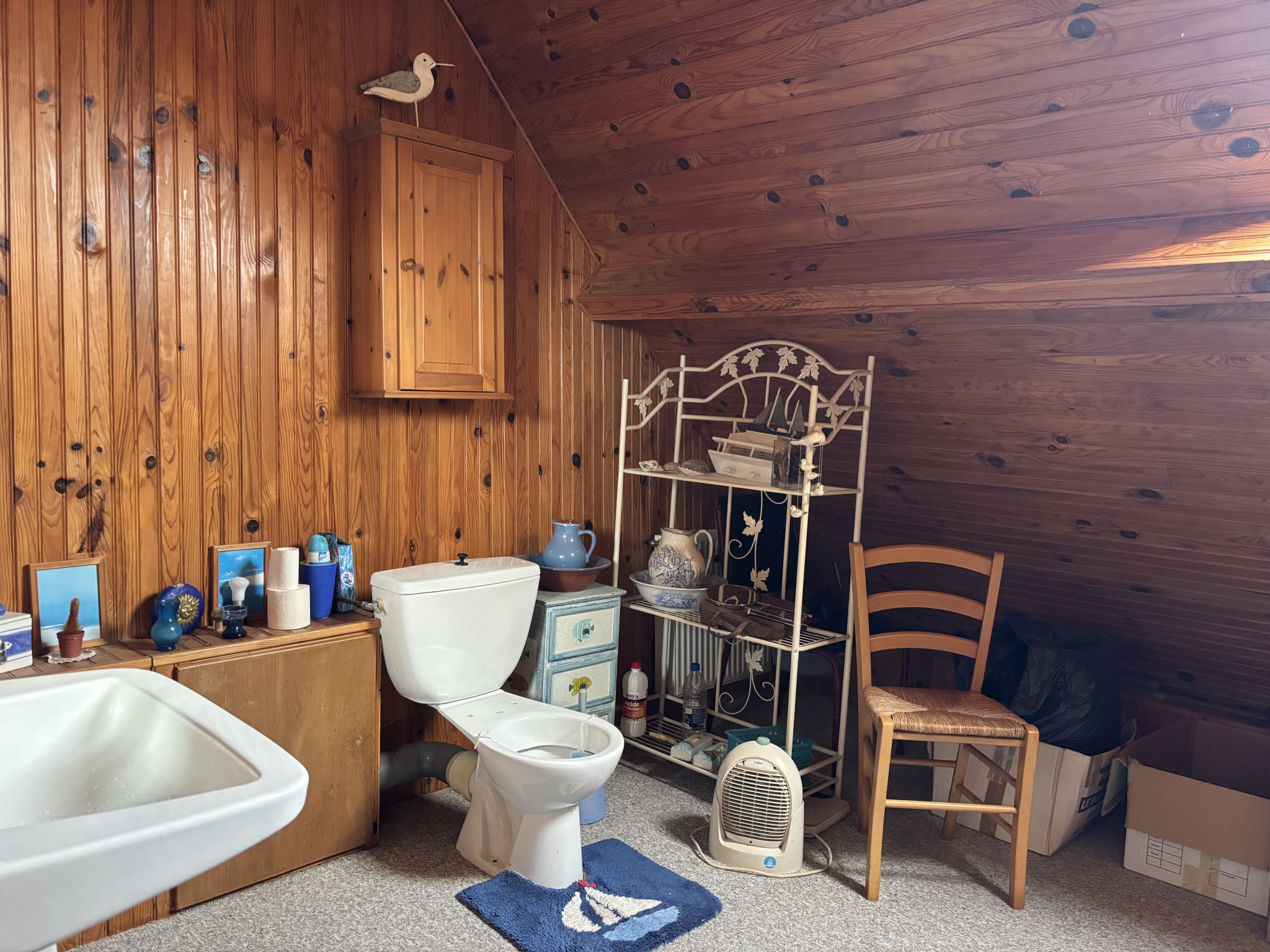 Étage : palier desservant deux chambres, une pièce traversante et un cabinet de toilette.