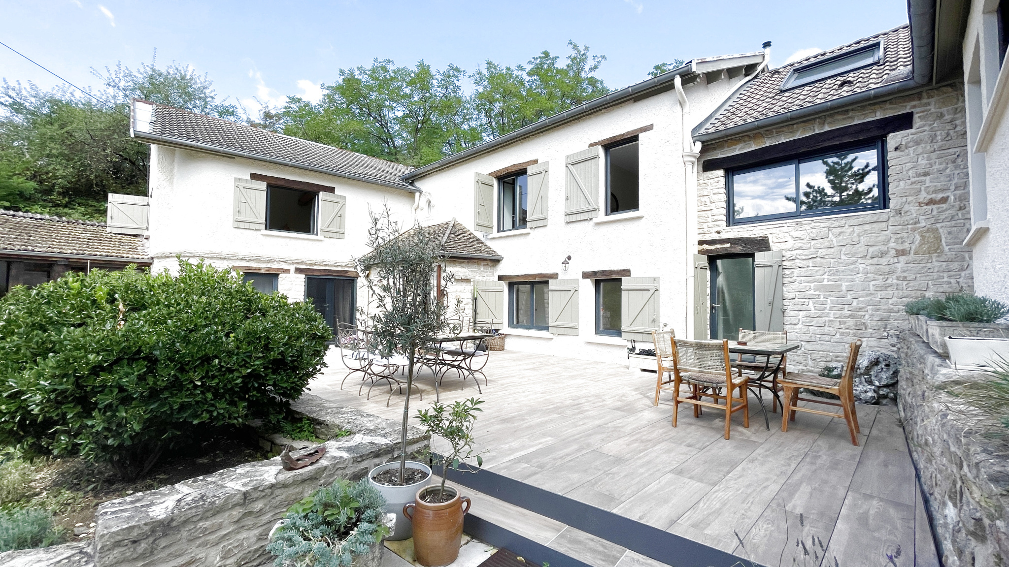 11566 - BEAUNE quartier résidentiel à l'écart de l'agitation urbaine et dans un environnement préservé - Nichée dans un écrin de verdure, à l'abri des regards, cette propriété atypique saura vous séduire par son originalité et la qualité de sa restauration, aussi bien intérieure qu'extérieure - D'environ 260m2 habitables, cette maison, baignée de lumière, se compose d'un bel espace de vie central au fort caractère avec cheminée monumentale en pierre, d'une cuisine élégante et très fonctionnelle, d'un salon intime, de 4 chambres dont 2 avec sanitaires privatifs, d'une salle de bains commune et d'un espace de jeux pour les enfants. Chauffage par le sol par PAC air/eau et climatisation réversible - Un logement indépendant bien aménagé, à l'écart de l'habitation principale, d'environ 60m2 sera le lieu idéal pour recevoir famille et proches - Vaste espace piscine couvert avec sanitaires et grande terrasse dominante avec joli point de vue - Dépendances - Terrain de 3785 m2 dont 1 541m2 en AOC Côte de Beaune 'Les Monsnières'