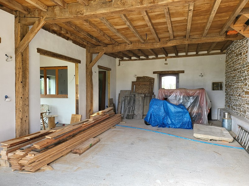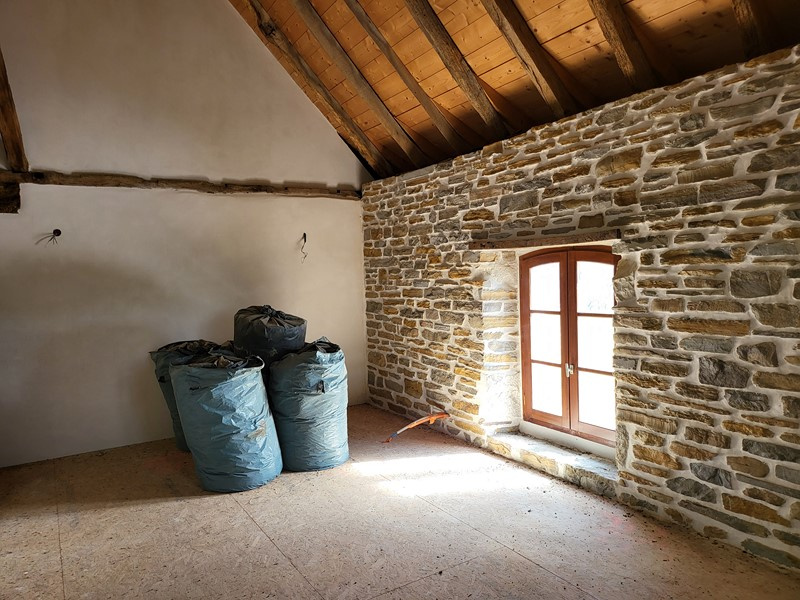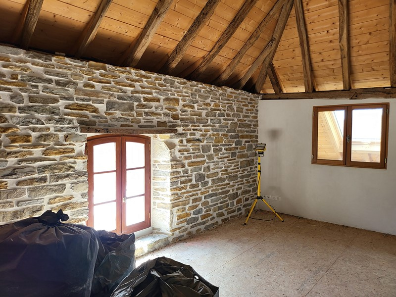 À ce jour tout le gros oeuvre de restauration a été réalisé : Toîture, enduits à la chaux, électricité neuve, assainissement individuel neuf avec filtre coco, huisseries en double vitrage, drainage périphérique, etc. Il ne vous reste plus qu'à apporter votre touche personnelle pour lui apporter les éléments de confort adaptés à vos goûts personnels : sols, sanitaires, cuisine, etc...