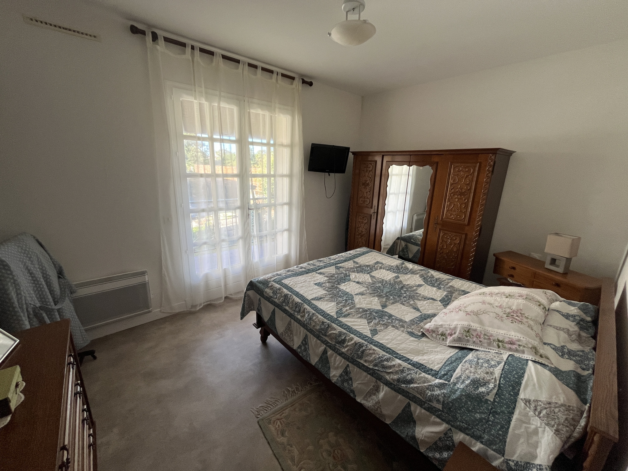 Elle se compose, en rez-de-chaussée, d'une terrasse couverte menant à l'entrée, d'un vaste salon/séjour lumineux de 40 m2 équipé d'un poêle à pellets, donnant accès à une terrasse et un balcon, d'une cuisine séparée orientée Est, de trois chambres, d'une salle d'eau avec douche à l'italienne, WC. En complément, un sous-sol total isolé comprenant : un grand garage avec portail automatique, un coin buanderie/atelier, une pièce supplémentaire de 20m2 et une cave.