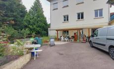 JOEUF Centre : Bel appartement de 116m2 en rez de chaussée composé d'une cuisine équipée-salon séjour avec cheminée -cellier-sdb(baignoire-douche) deux chambres-buanderie-chaufferie -c/central Gaz-climatisation - grande terrasse couverte - beau terrain boisé-deux grands garages-portail électrique.