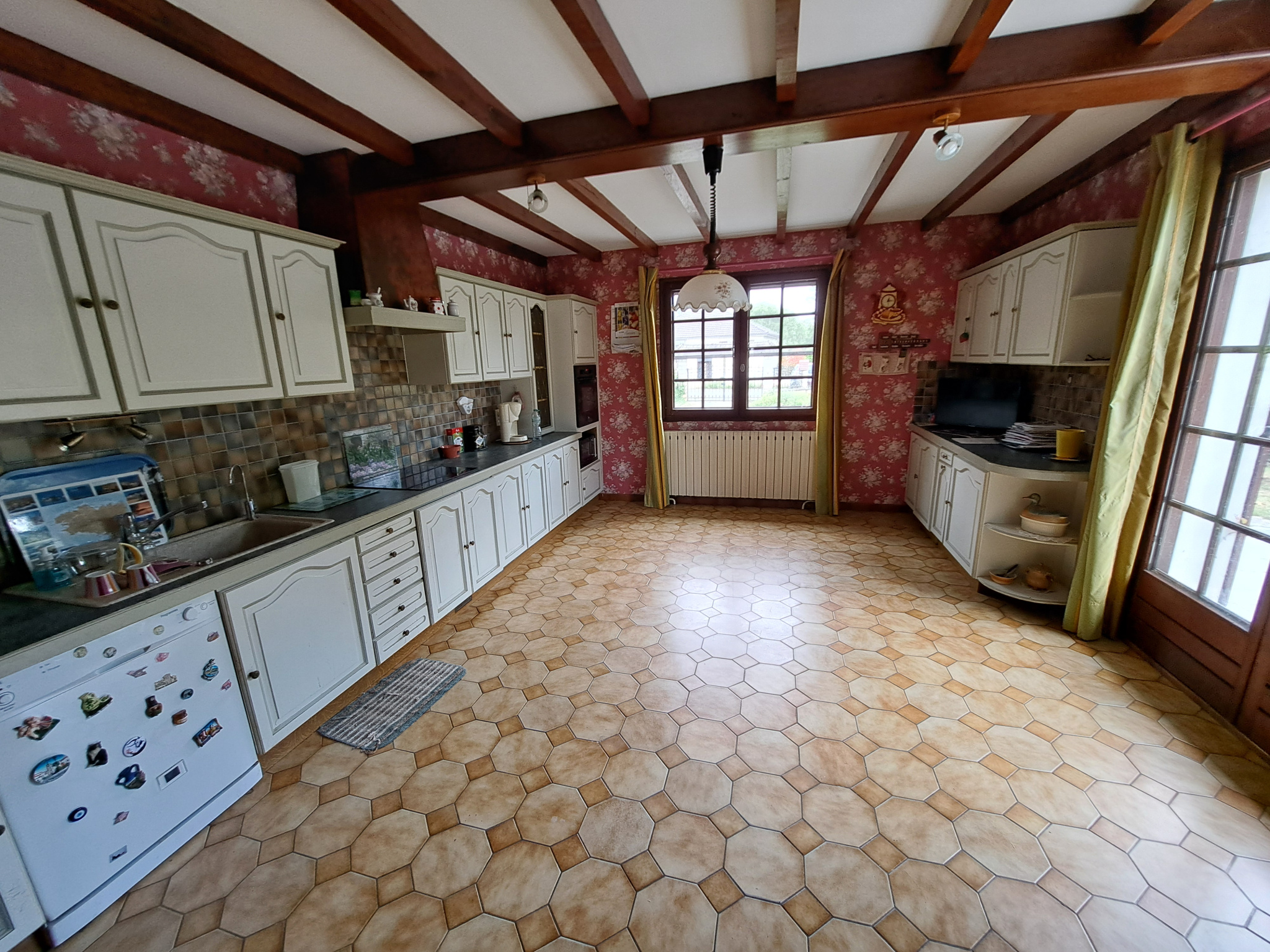A 15 mn au Nord de Sens, cette belle maison pleine de charme, de très bonne construction, comprend : au RDC : grande entrée, cuisine aménagée équipée de 24 m2, grand salon de 44 m2 avec cheminée insert et balcon, chambre de 17,5 m2, salle de bains (baignoire et douche), wc séparés.