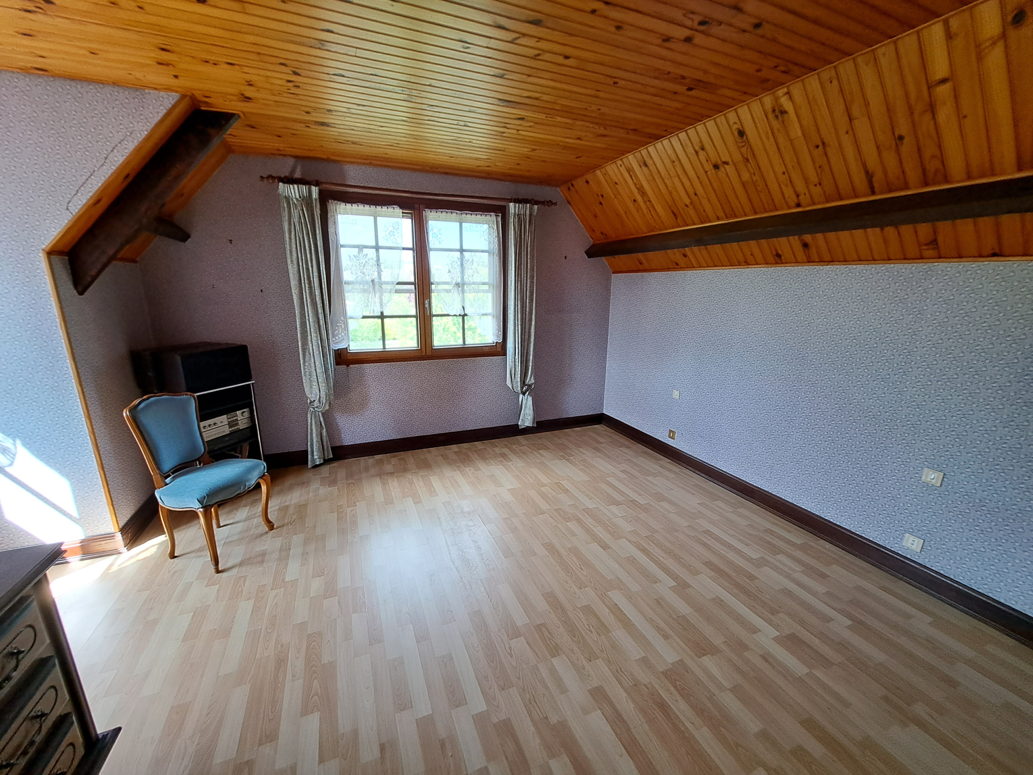A l'étage : une grande pièce palière de 28 m2 dessert deux chambres (26 et 16 m2) et une salle d'eau avec wc.