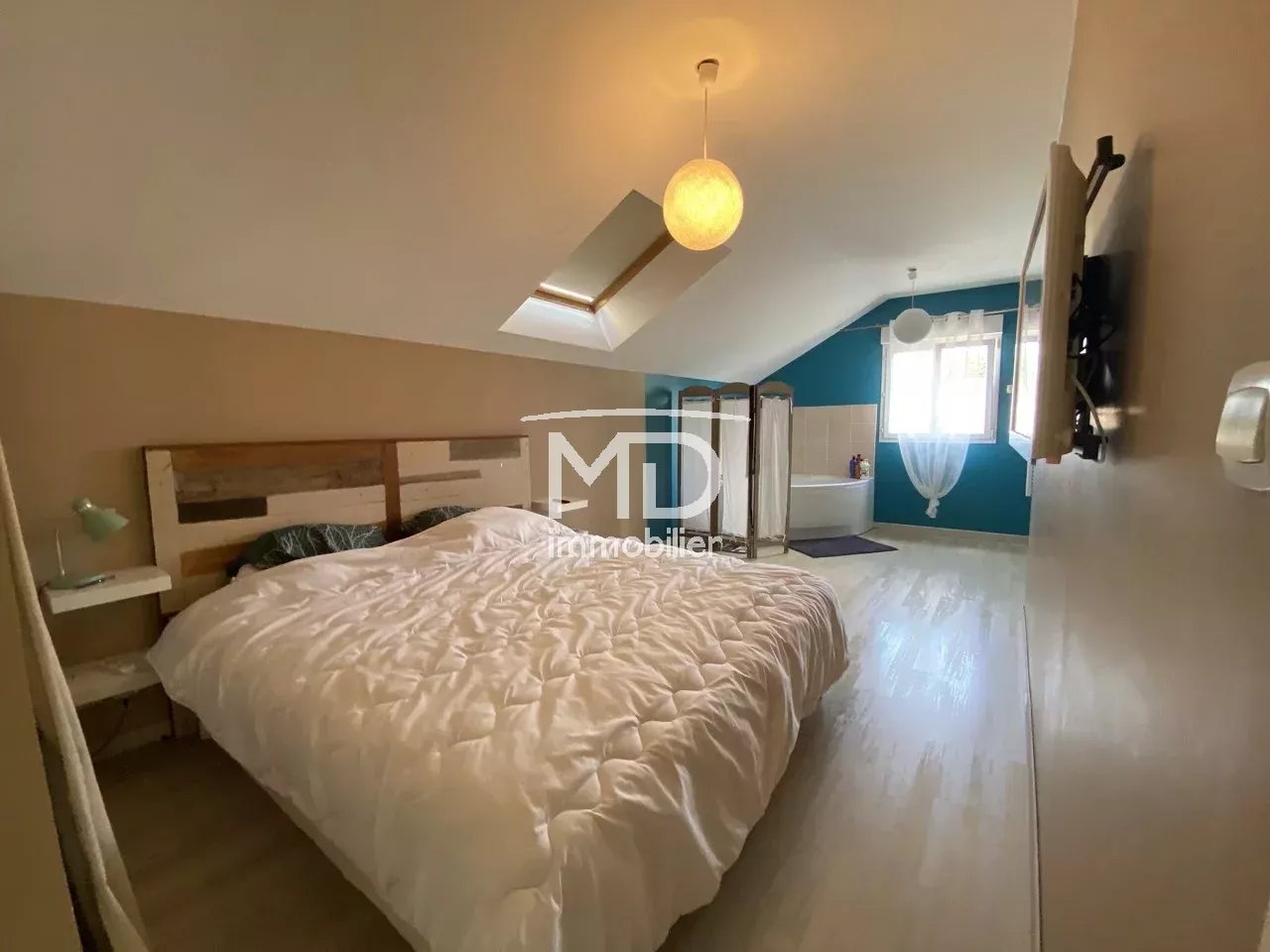 - À l'étage : palier, salle de douche avec WC, 3 chambres dont une belle suite parentale avec salle de bains.