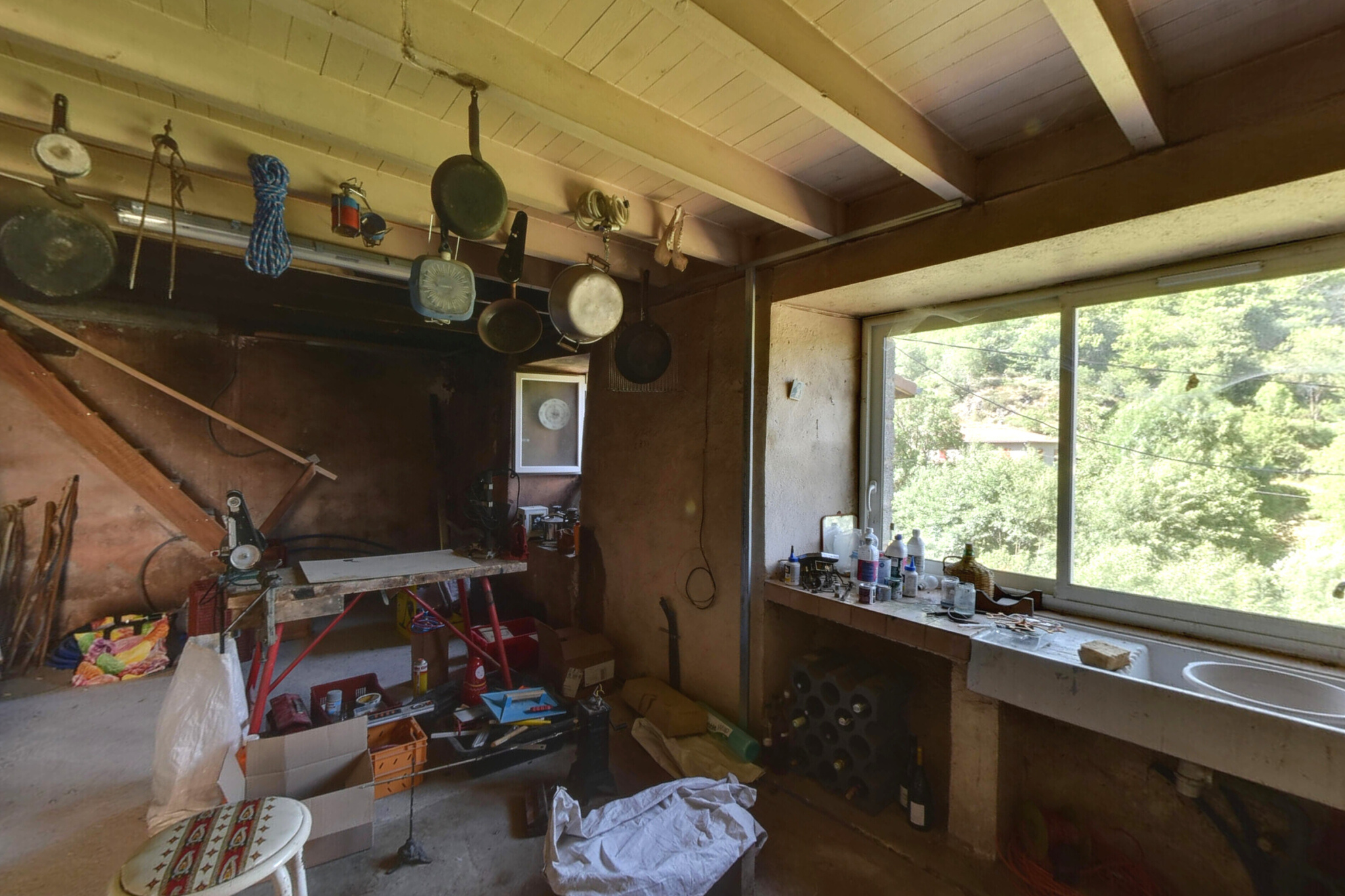 Côté habitable, le séjour est lumineux, équipé d'un poele à bois et la cuisine est aménagée. 1 chambre, salle d'eau avec douche italienne et WC.