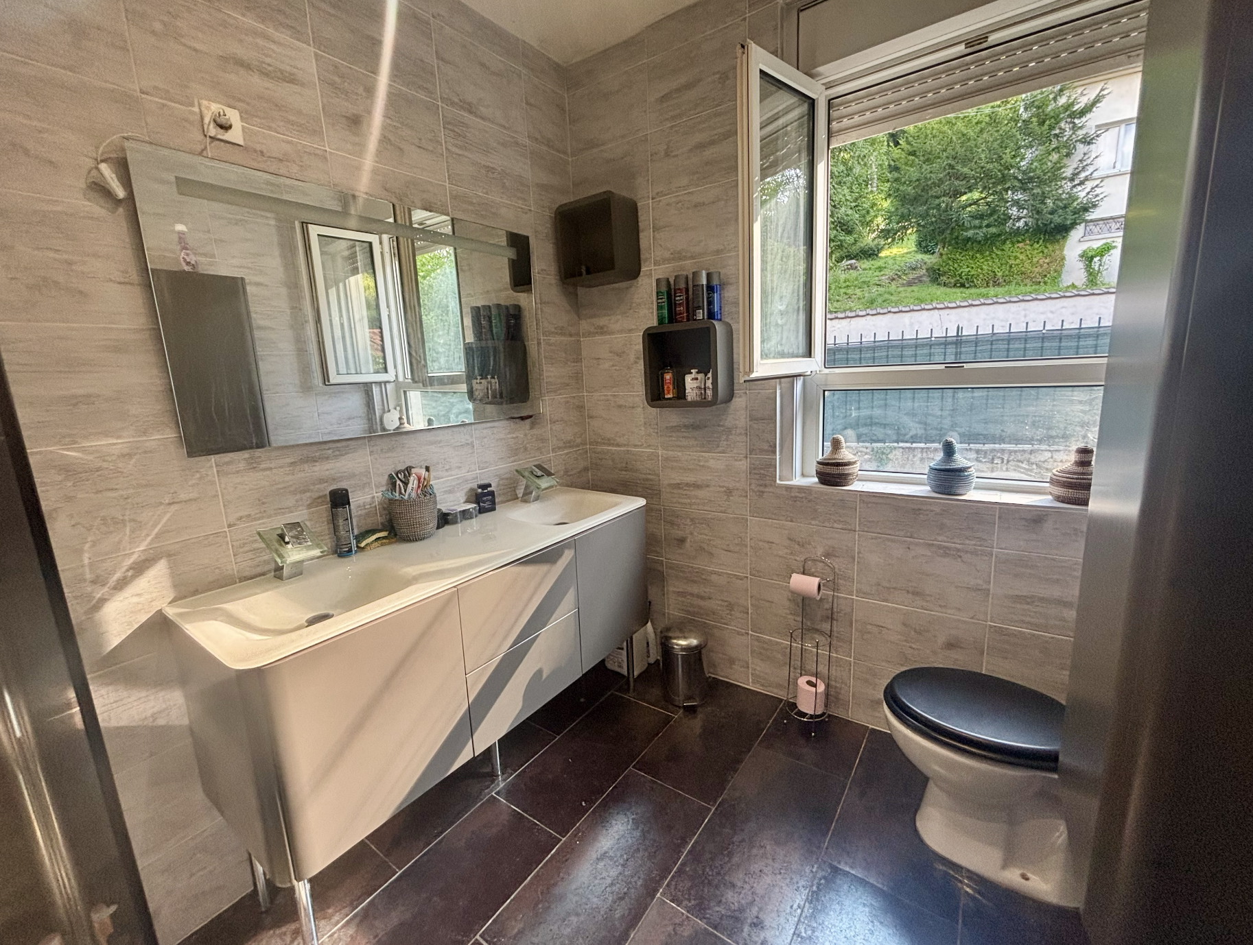 Au rez-de-chaussée : Salon, Salle à manger, Cuisine ouverte et WC indépendant.
