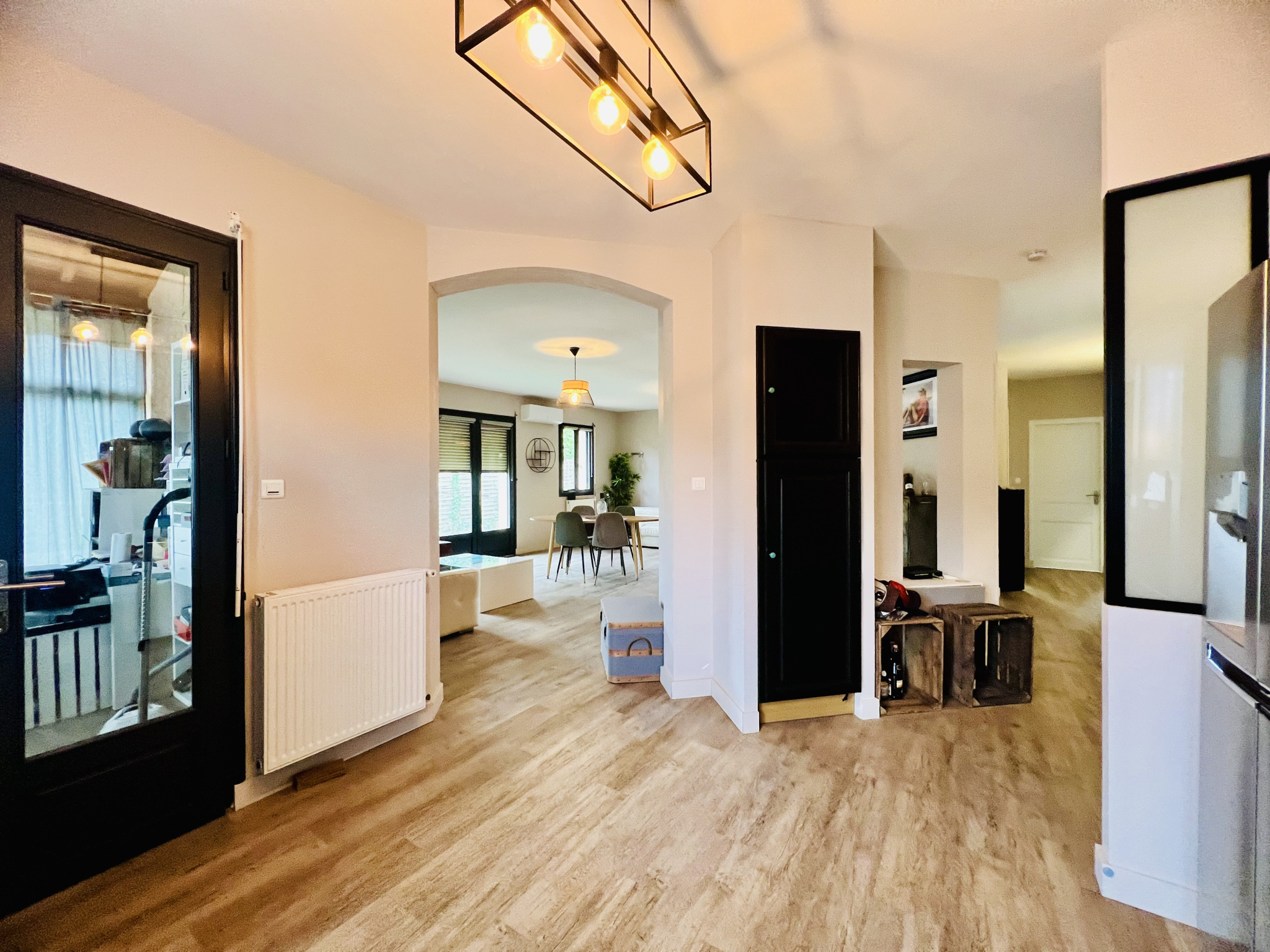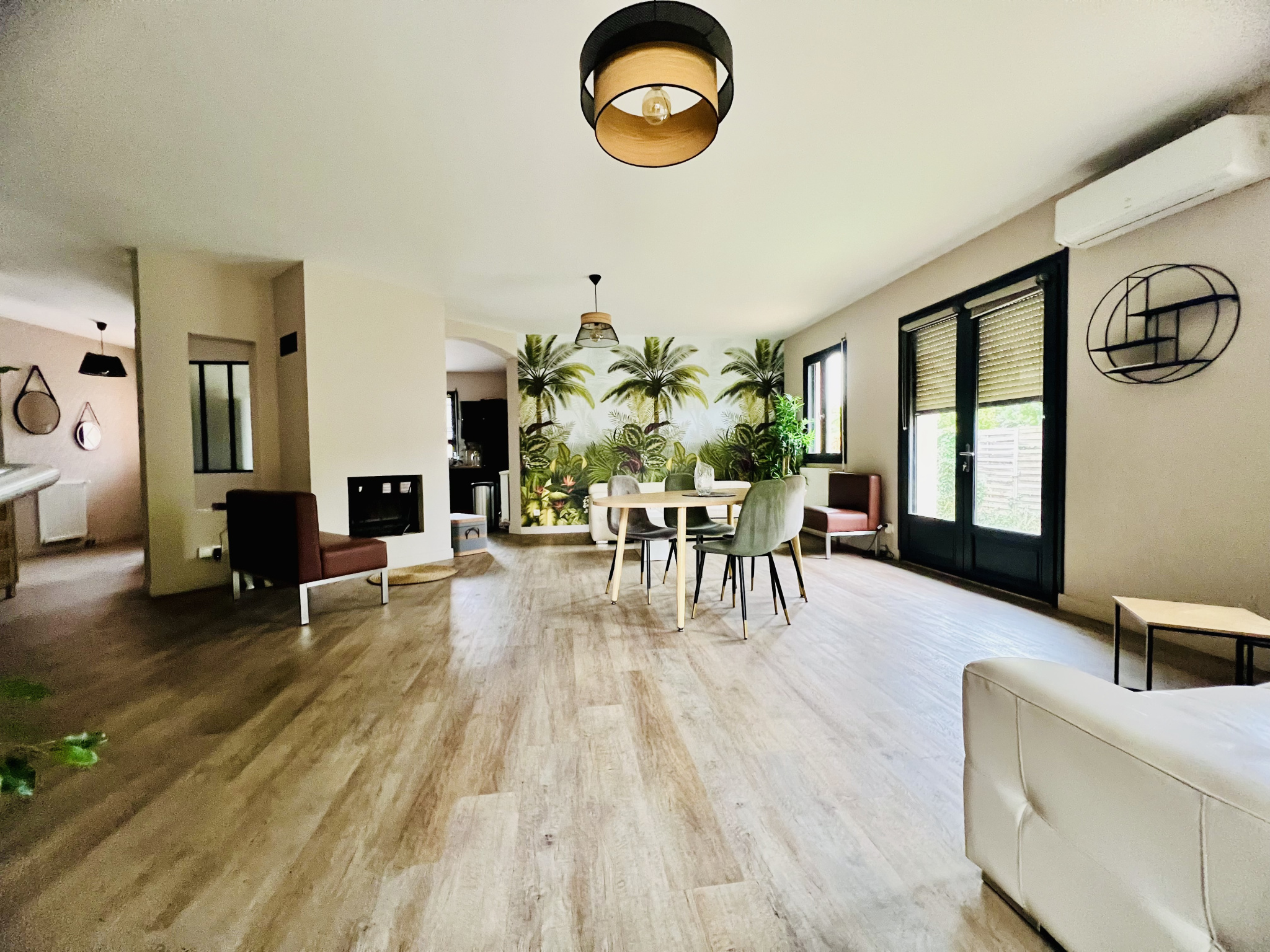 D'une surface habitable de 118m2, elle se compose d'un vaste séjour de 48m2 avec cheminée insert centrale et climatisation, ouvert sur une cuisine équipée. Un porche couvert de 11m2 communicant directement avec la cuisine, idéal pour profiter d'un espace abrité supplémentaire. La partie nuit offre 3 chambres avec placards, une salle de bains et un wc indépendant.
