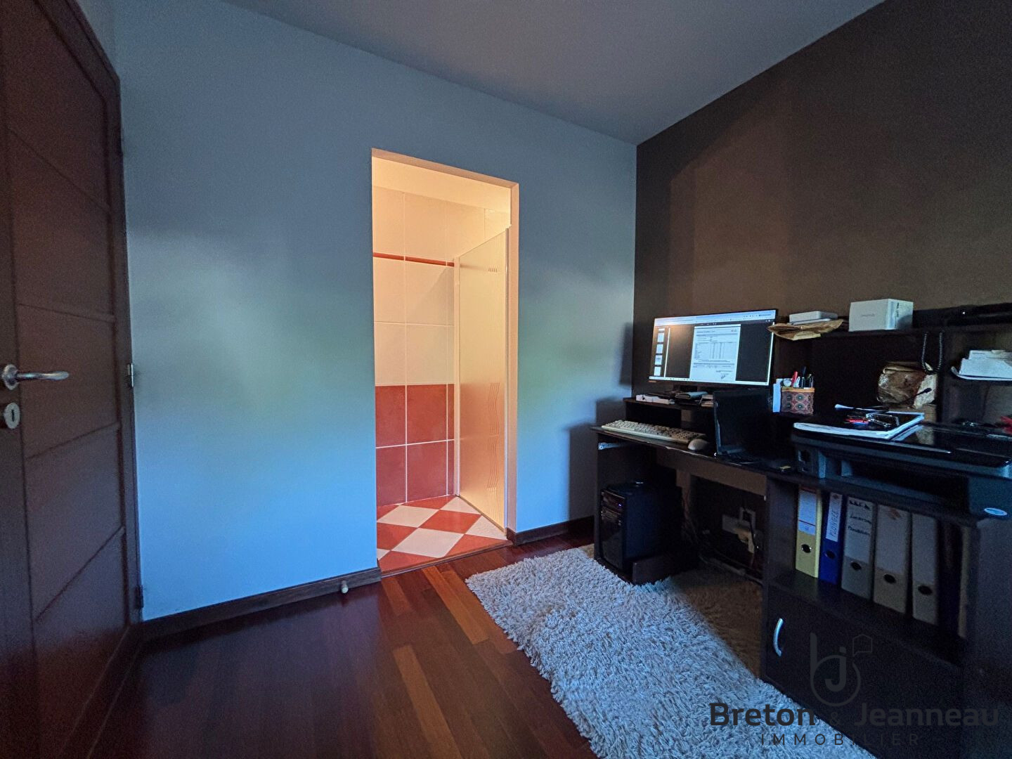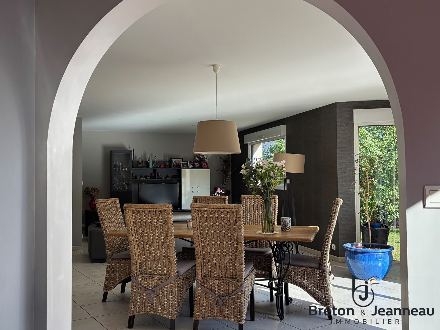 Château-Gontier sur Mayenne, située dans un quartier résidentiel calme, très agréable maison contemporaine de 2006 qui allie modernité et confort, très lumineuse, offrant une vie de plain pied comprenant un spacieux hall d'entrée, cuisine semi ouverte sur séjour salon d'environ 60 m² donnant accès sur terrasse et jardin, une suite parentale (salle d'eau et dressing), une chambre et sa salle d'eau, toilettes, cellier.