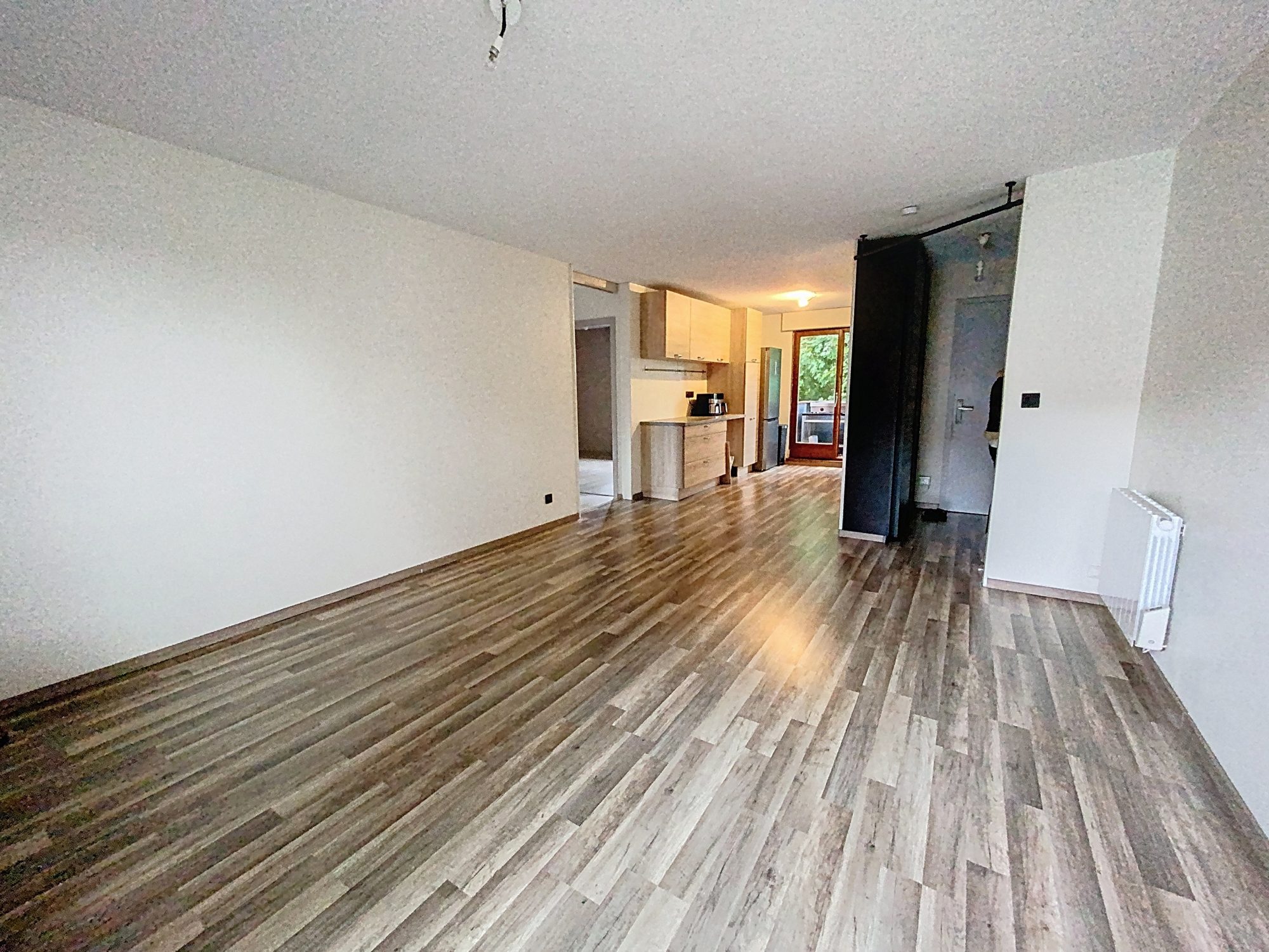 Profitez d'une vaste pièce à vivre de 30 m² avec cuisine ouverte entièrement équipée et meublée (plaque, hotte, four, lave-vaisselle), offrant un accès direct à deux balcons depuis la cuisine et le séjour.