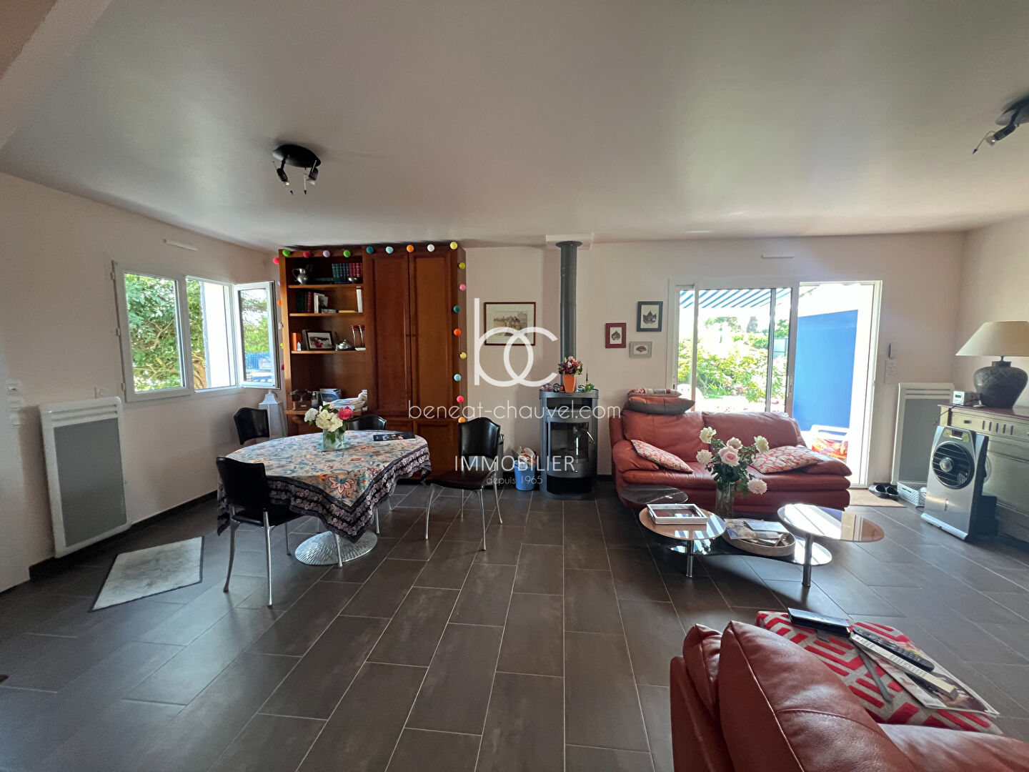 Au rez-de-chaussée, un salon-séjour donnant sur la terrasse, une cuisine aménagée/équipée semi-ouverte, une arrière cuisine, une chambre avec salle d'eau privative, un WC.