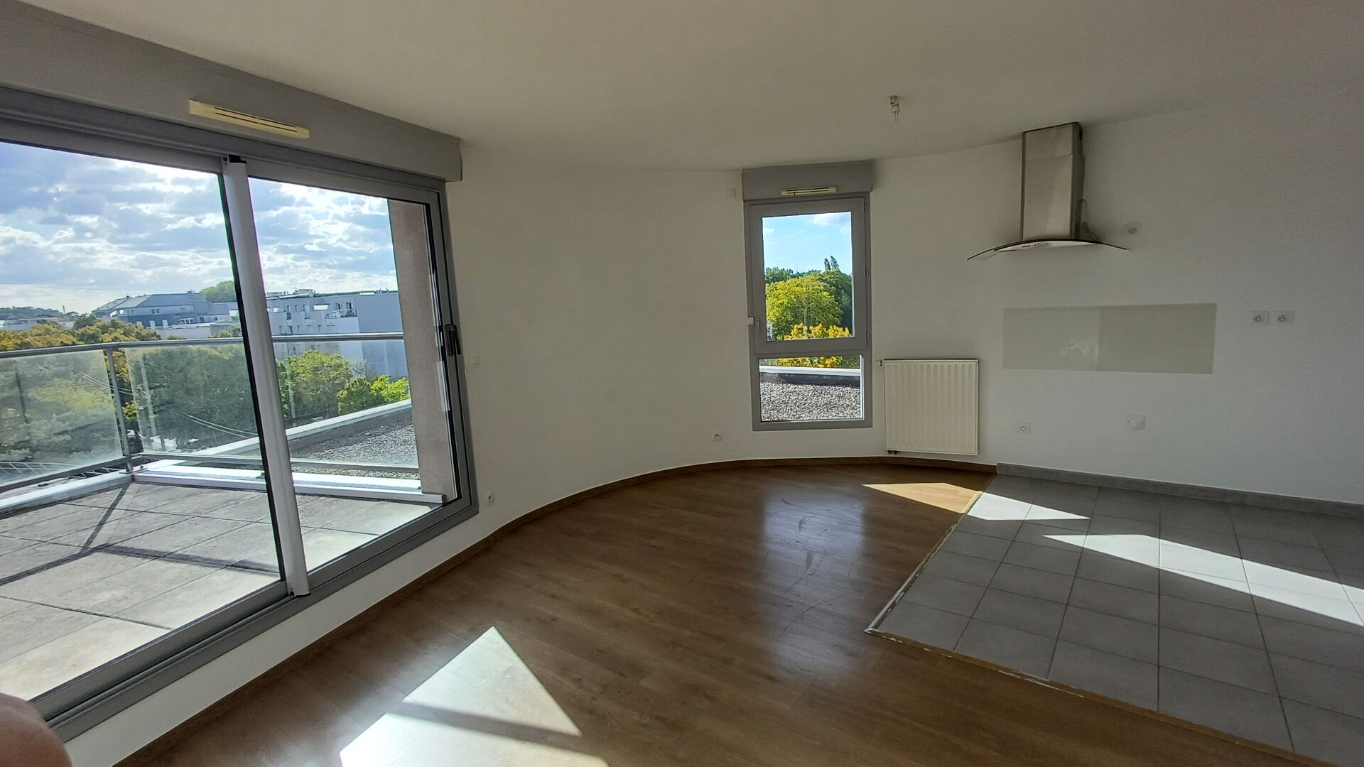 Cet appartement de type 3 avec terrasse et garage. Idéalement situé au dernier étage avec ascenseur d'un petit immeuble récent. Venez découvrir cet appartement LUMINEUX et FONCTIONNEL. Il dispose d'un espace de vie avec cuisine ouverte donnant sur terrasse exposée plein sud, 2 chambres sur parquet, salle d'eau.