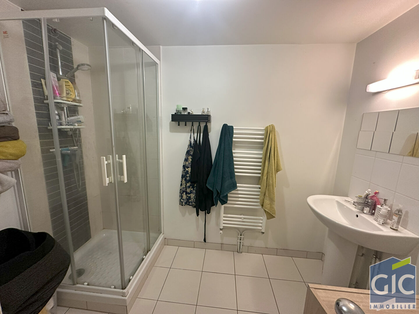 Entrée avec placard, chambre avec salle d'eau et cuisine ouverte avec arrière cuisine.