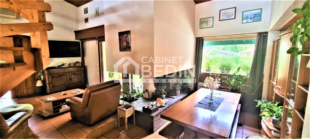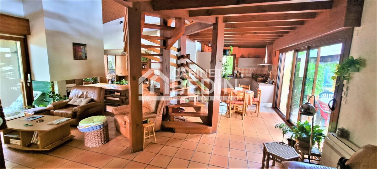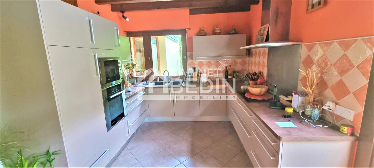 Maison familiale avec garage et dependance. Belle propriété des années 80, chaleureuse et fonctionnelle, avec climatisation réversible et cheminée. Elle offre trois chambres au rez-de-chaussée, une salle d'eau, un WC, ainsi que de nombreux rangements. La cuisine équipée s'ouvre sur une pièce de vie lumineuse.