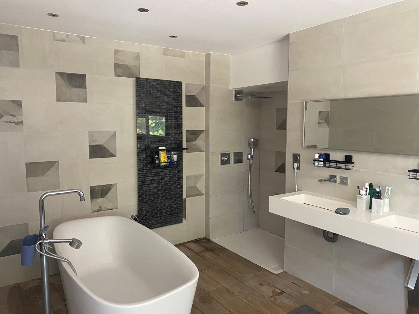 Profitez de l'extérieur avec la magnifique piscine 12X6, donnant sur le parc boisé de 5000 m2 au calme absolu.