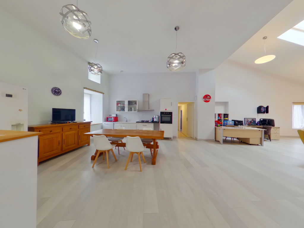 - Au rez-de-chaussée : Bel emplacement, ancien restaurant avec terrasse et patio (135 couverts) avec son logement état neuf et sa terrasse privée, d'une surface globale supérieure à 640m² comprenant, salle de restaurant, labo équipé (détail à la demande), arrière cuisine, réserve, vestiaire, toilettes. Accueil PMR. Garage