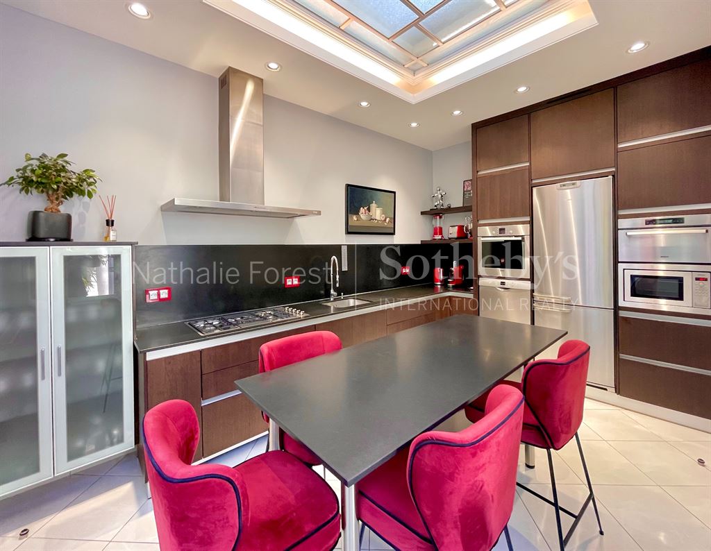 La maison vous accueille par un hall distribuant d’un côté une élégante salle à manger, et de l’autre un somptueux double salon baigné de lumière, sublimé par un parquet en chevron et une vue imprenable sur la cour intérieure arborée. Egalement présente, une belle cuisine séparée, entièrement équipée. Enfin une superbe suite parentale possédant salle de bains privative et toilettes séparées vient compléter le tout avec en prime une jolie vue sur une cour intérieure.