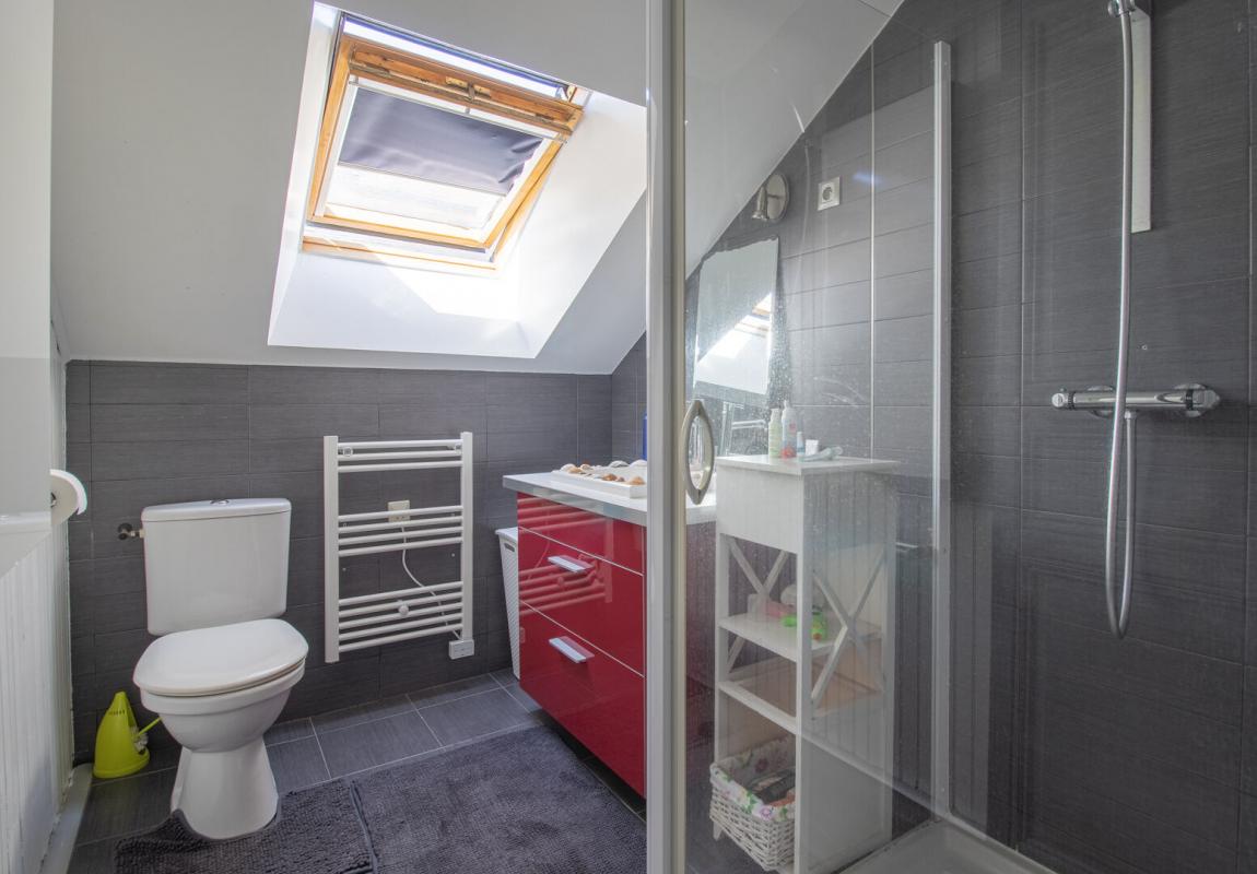 Au deuxième étage, un palier distribue une chambre ainsi qu'une salle d'eau avec WC.