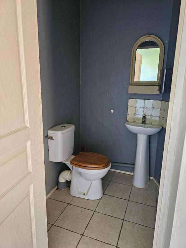 2ème étage : Une grande pièce de vie avec un espace bureau, 2 grandes chambres, dont une avec un poêle à bois, et un WC avec lave-mains.