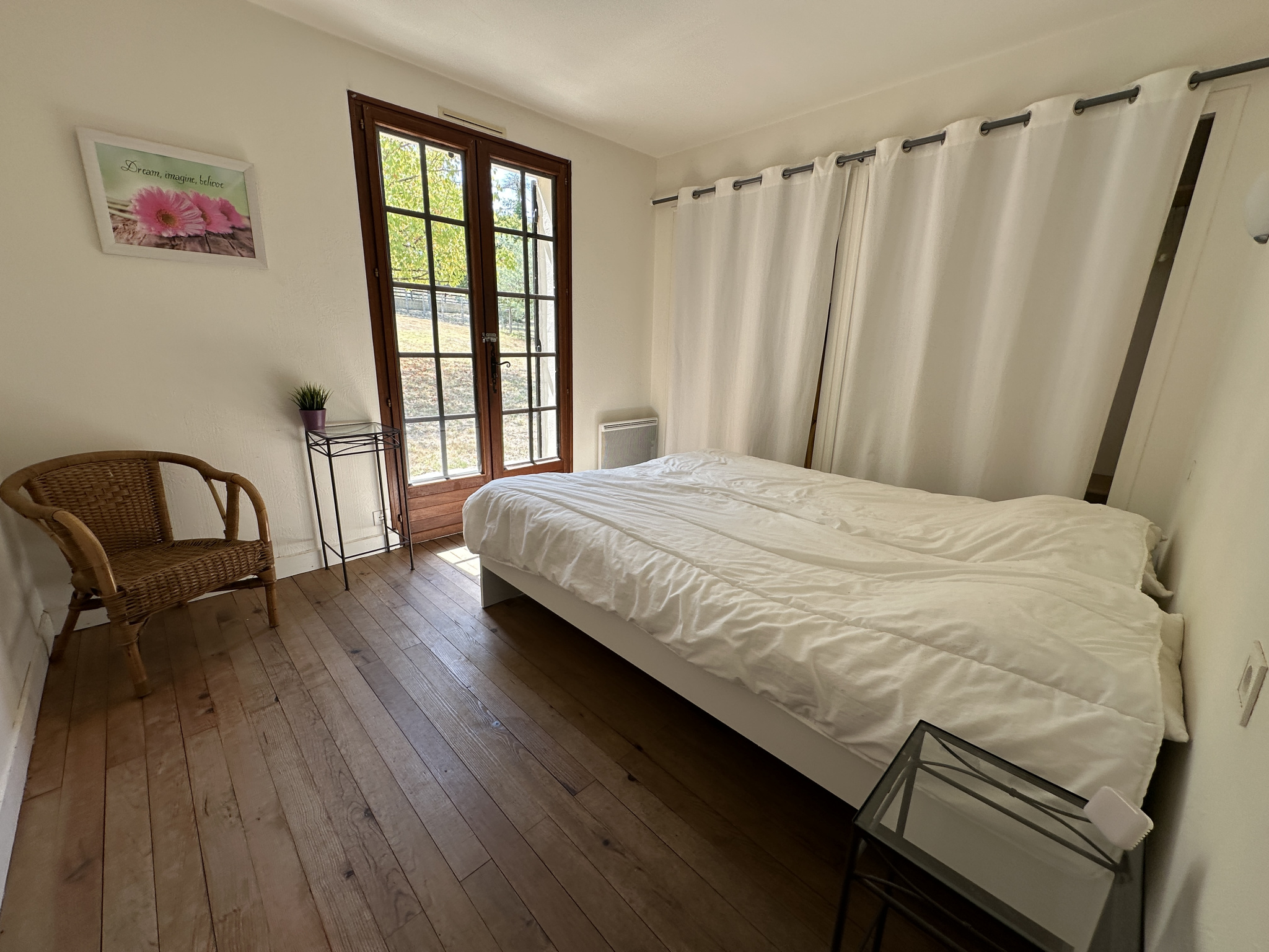 Elle offre un salon-salle à manger avec insert bois, une cuisine séparée, trois chambres dont une suite parentale avec salle d'eau, ainsi qu'une salle de bains indépendante avec WC et un second WC séparé.