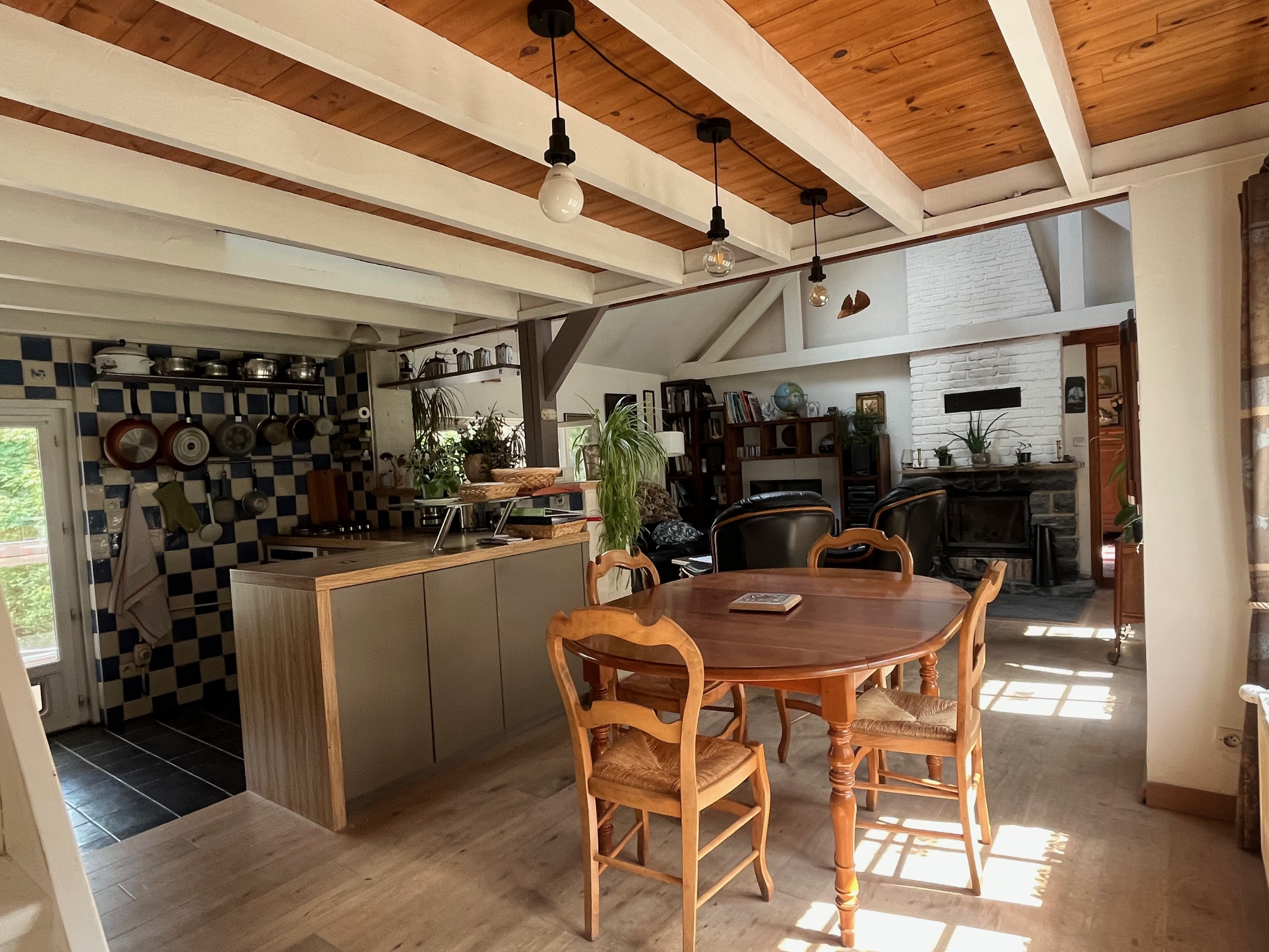 On retrouve au rez de chaussée : un Hall d'entrée, un chaleureux salon séjour, une salle à manger, une cuisine équipée, une salle de bains, un WC, une chambre, une véranda, une buanderie
