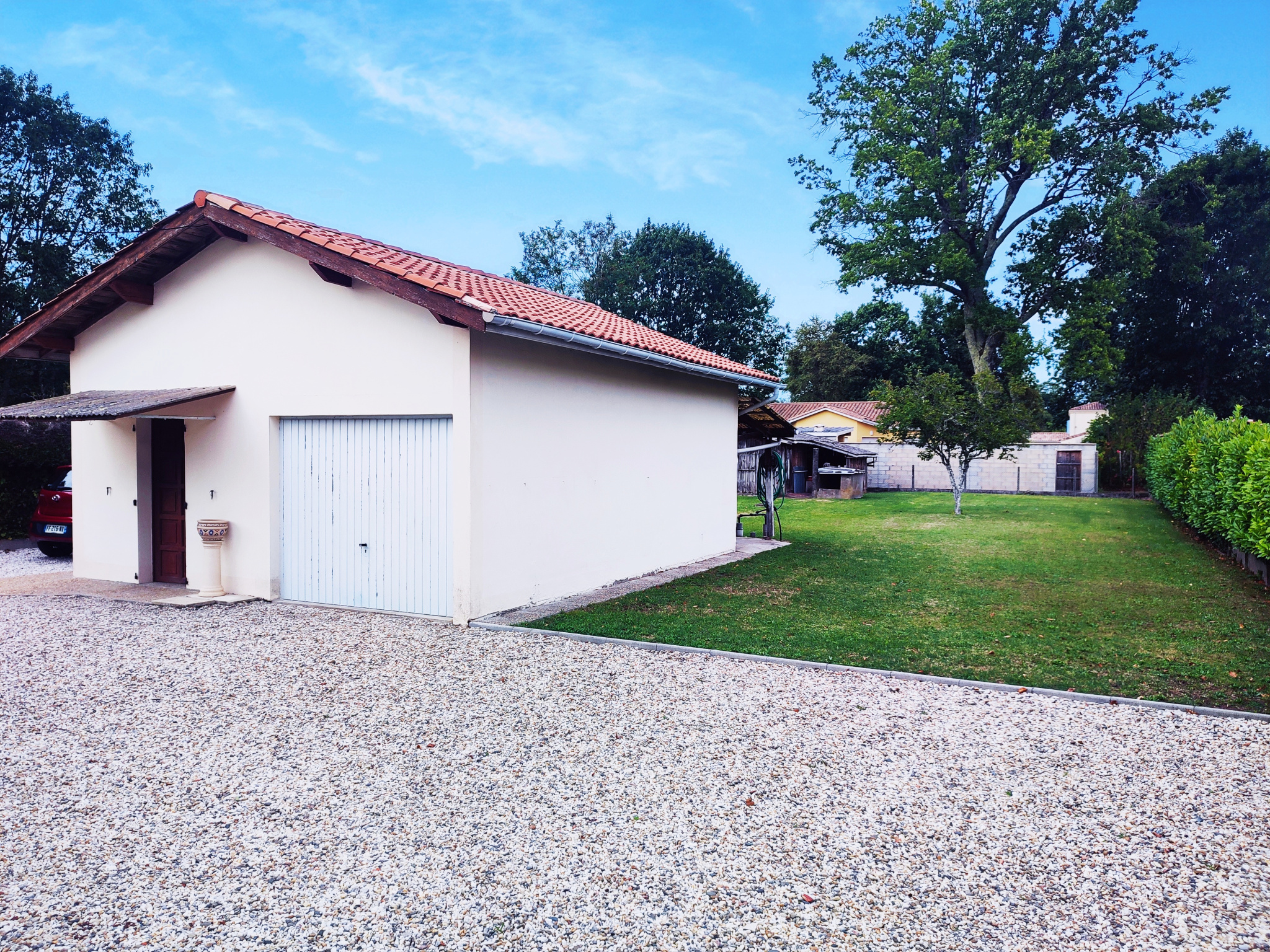 Vous disposerez également de deux bâtiments indépendants : un grand garage de 38 m2 avec cuisine, facilement aménageable selon vos besoins, et une grange offrant de multiples possibilités.