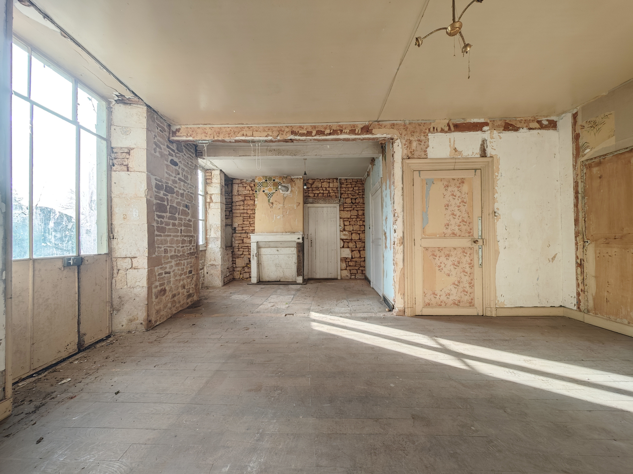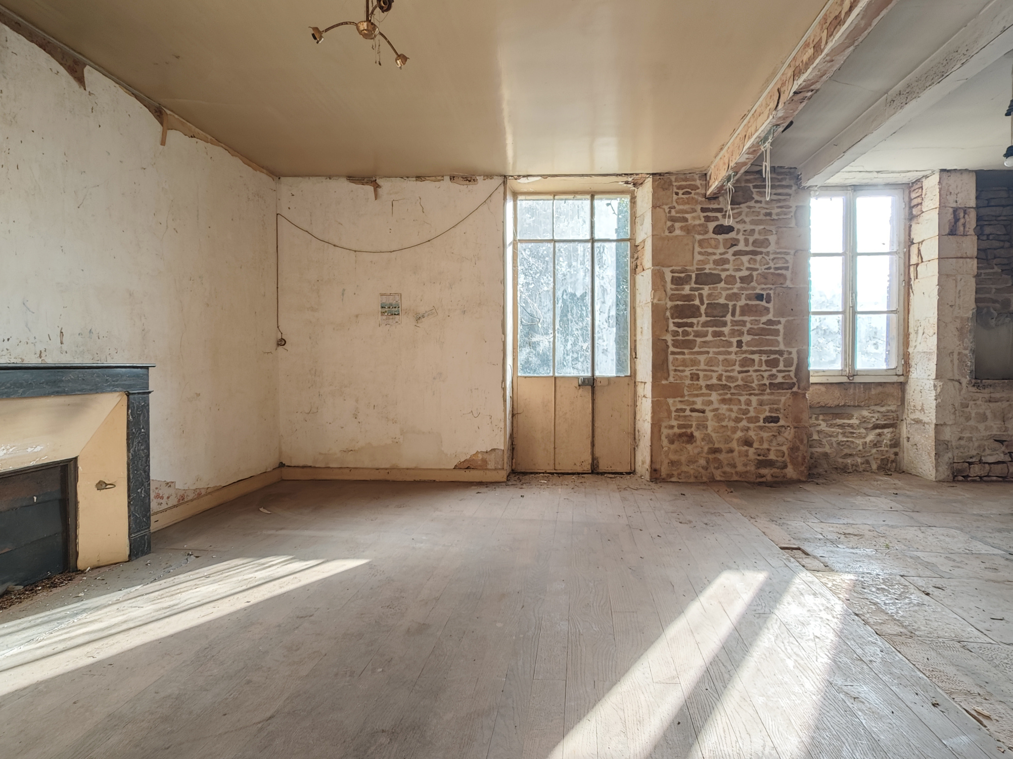 PLACE DU CHAMP DE FOIRE. PICTAVE immo, votre agence immobilière à LEZAY, vous propose en EXCLUSIVITE cette charmante maison de 1867 à rénover. Amateurs de pierres, de parquets anciens et de cheminées, laissez-vous séduire par le caractère authentique de cette propriété. Dès l'entrée, le dallage d'époque et les murs en pierre apparente donnent le ton. La pièce principale, ouverte sur le jardin, offre un bel espace pour accueillir votre future cuisine. Une seconde pièce au rez-de-chaussée peut être aménagée en salon ou en chambre selon vos besoins. À l'étage, le palier dessert quatre grandes chambres, une salle d'eau ainsi qu'une pièce supplémentaire, idéale pour créer une salle de bains. Le dernier niveau abrite un vaste grenier de 130 m2, offrant de multiples possibilités d'aménagement. Un garage attenant de plus de 50 m2, doté d'une belle porte cintrée, permet à la fois stationnement et espace de stockage. Au fond du jardin clos et arboré, plusieurs dépendances viennent compléter l'ensemble. Située en plein coeur du village, sur la place du Champ de Foire, la maison bénéficie d'une proximité immédiate avec tous les commerces et services : marché, boulangeries, cafés, tabac-presse, restaurants, supermarché, fleuriste, médecins, dentistes, pharmacies et écoles.