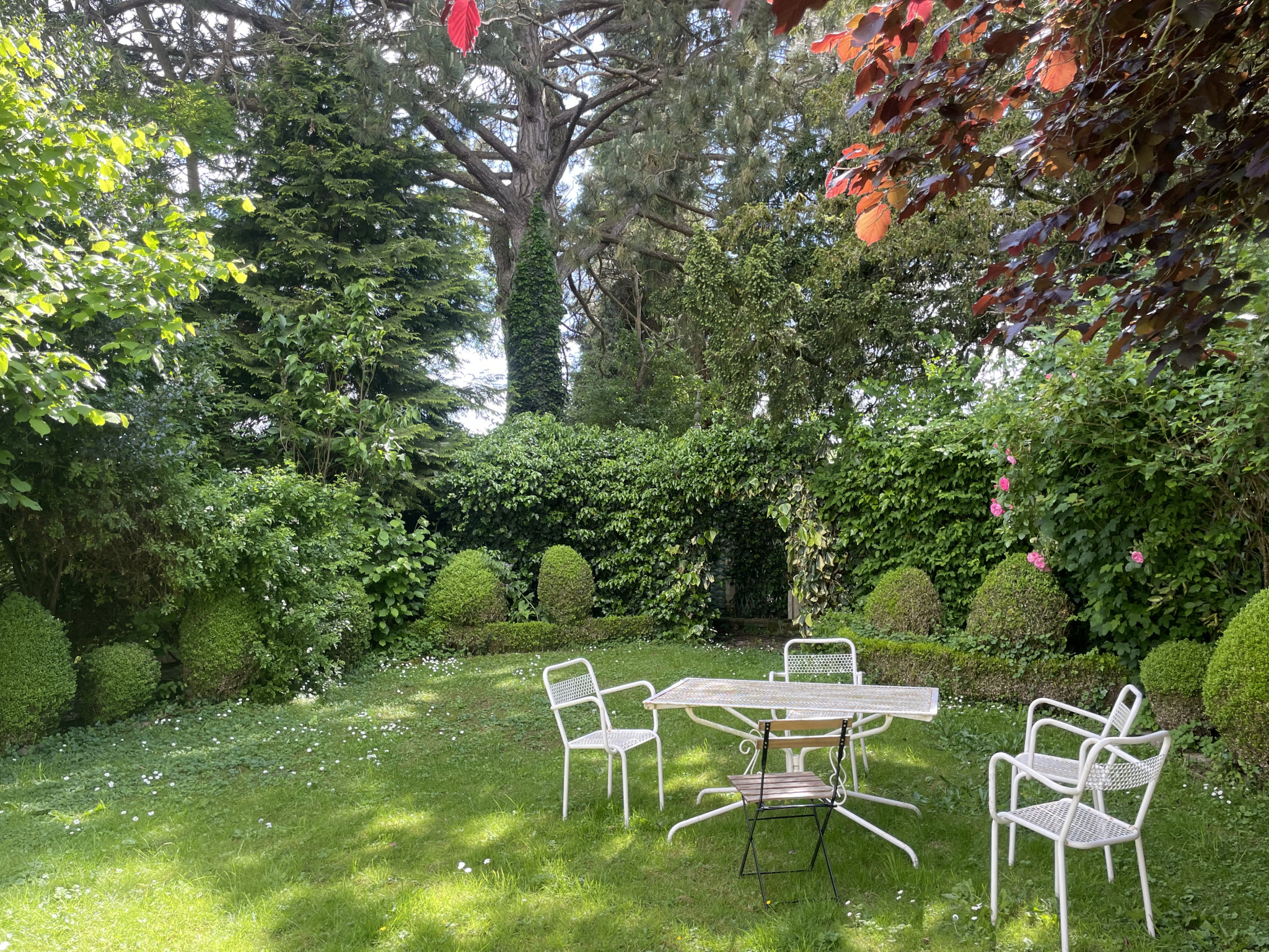 Dans un petit village, ravissante maison ancienne sur un joli terrain arboré et planté intimiste de 1526m2.
