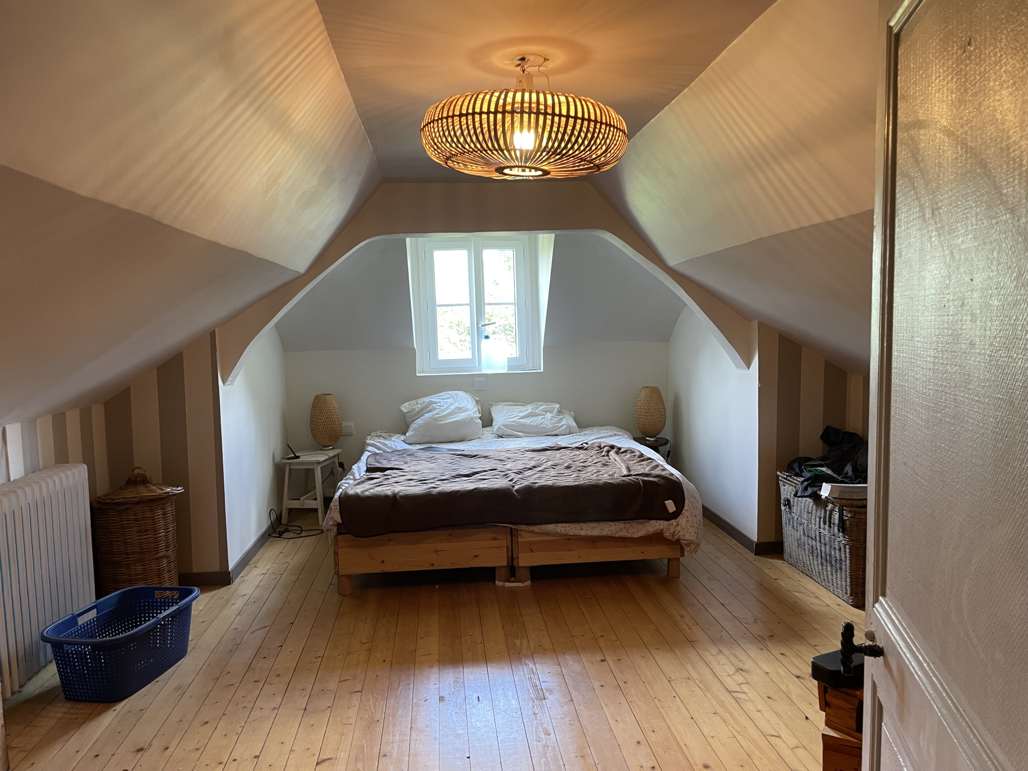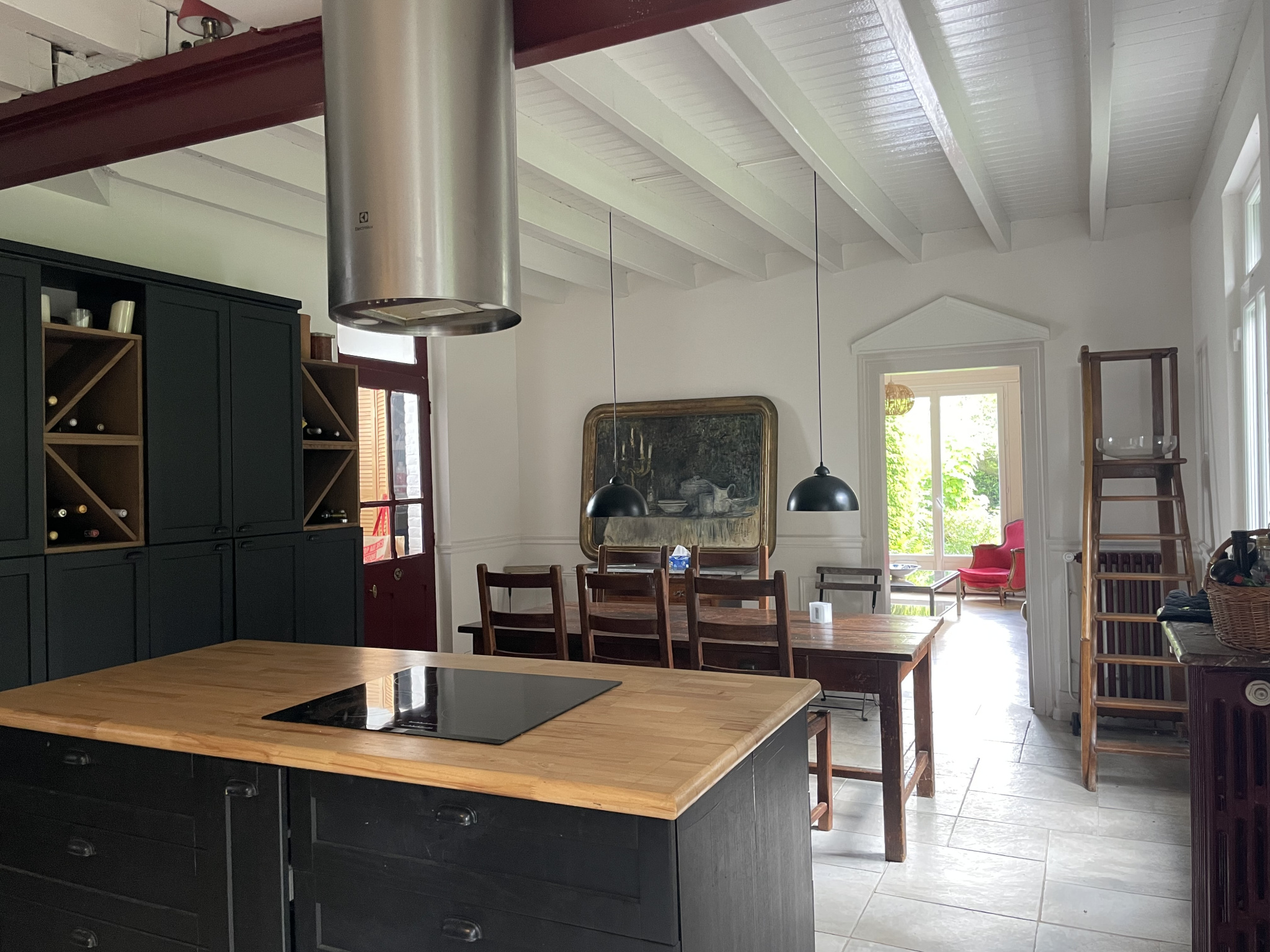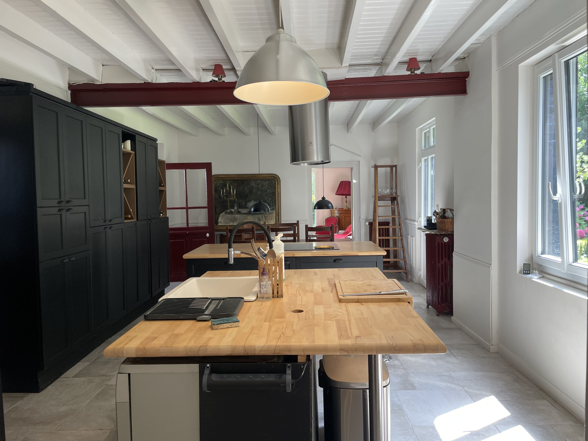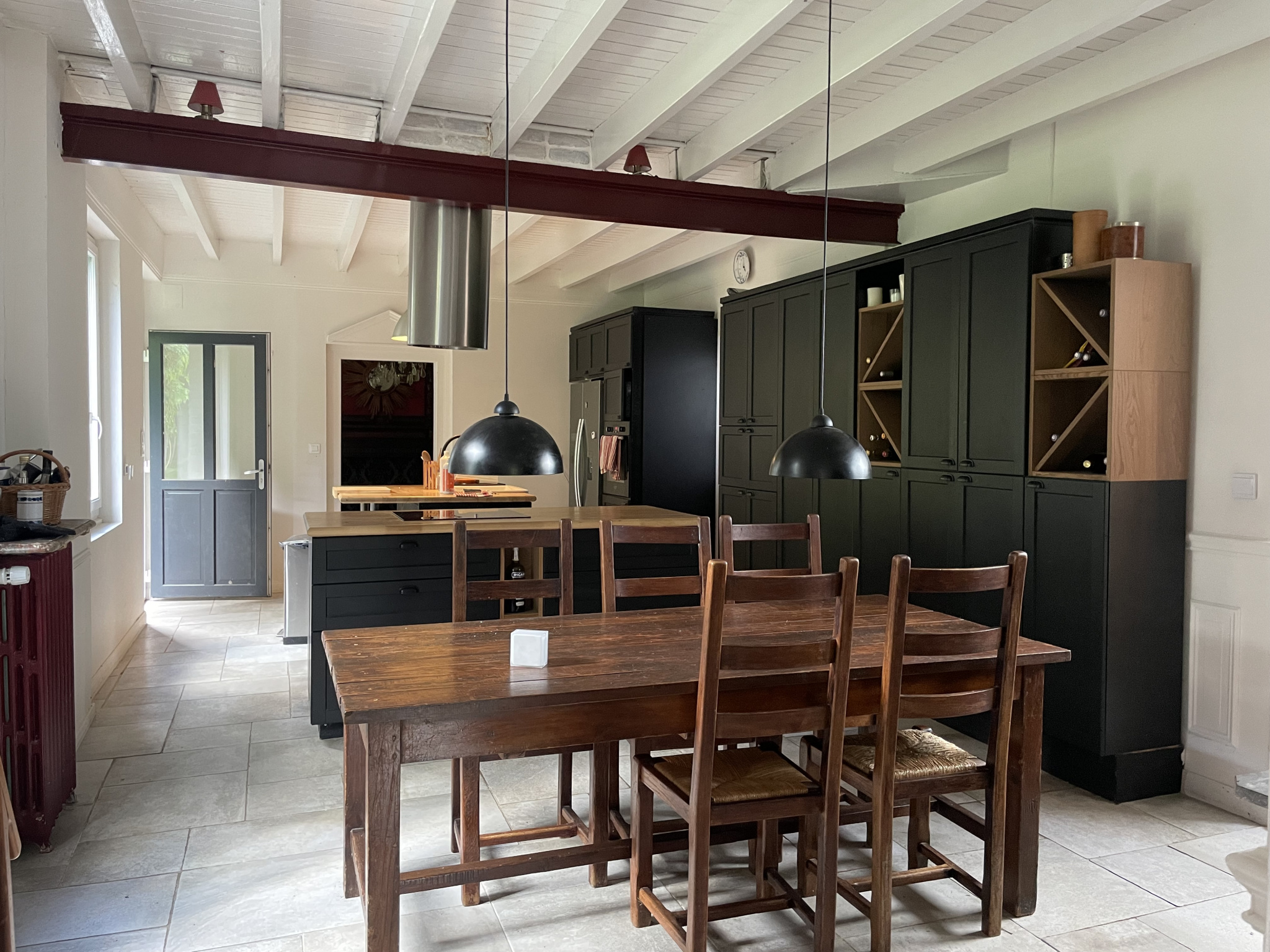Cette longère au calme offre de beaux volumes, une vaste espace cuisine A&E avec espace repas de 32m2, salon cosy avec cheminée/insert, autre salon, 1 chambre, salle d'eau, wc.
