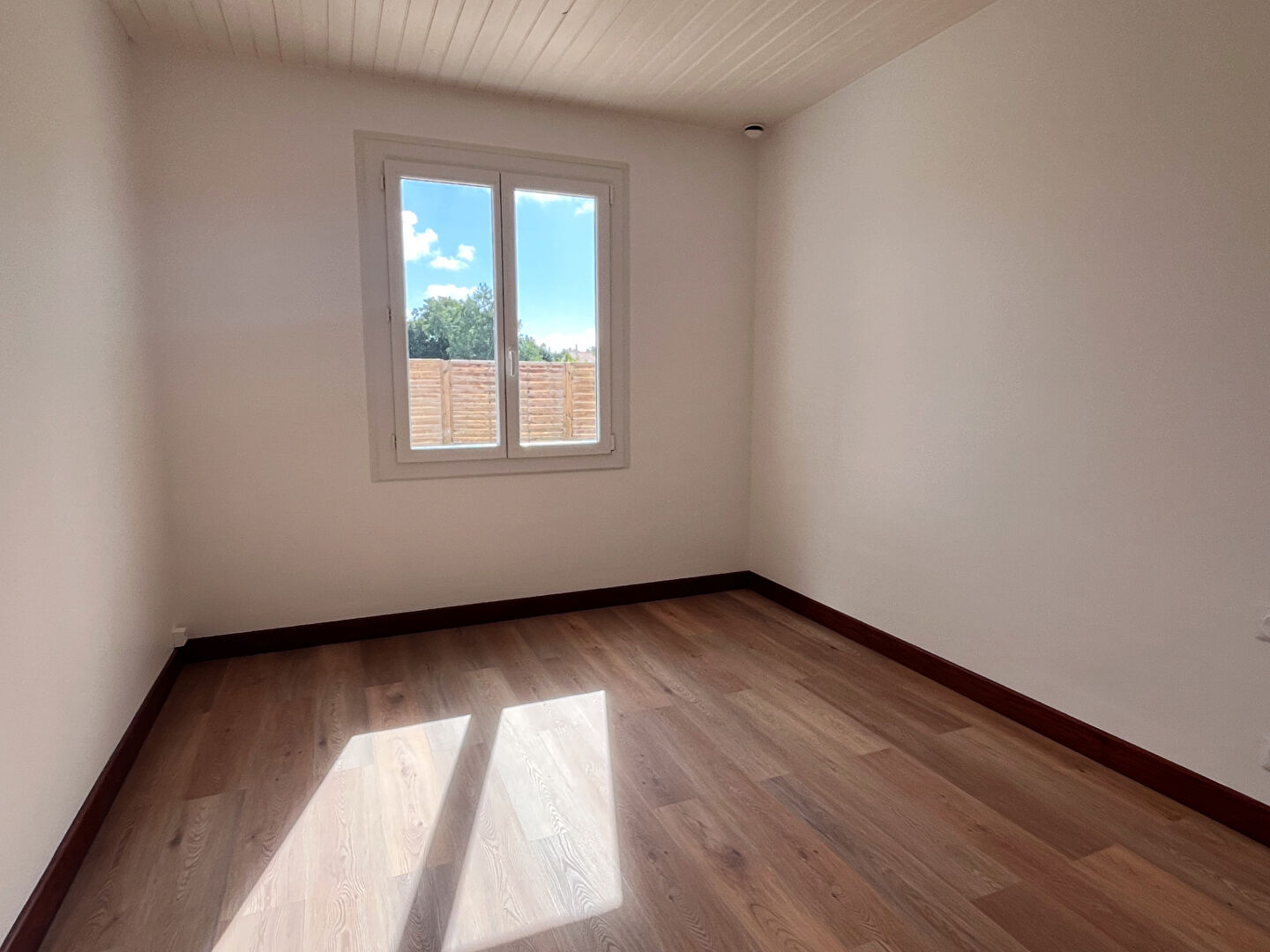 Maison plain-pied ,5/6 pieces de 98 m2 , rénovée en 2025, comprenant entrée, 3 chambres , un bureau de 9,1 m2, piece de vie 38 m2 plein sud sur vaste terrasse de 50 m2 , Salle d'eau, WC indépendant.