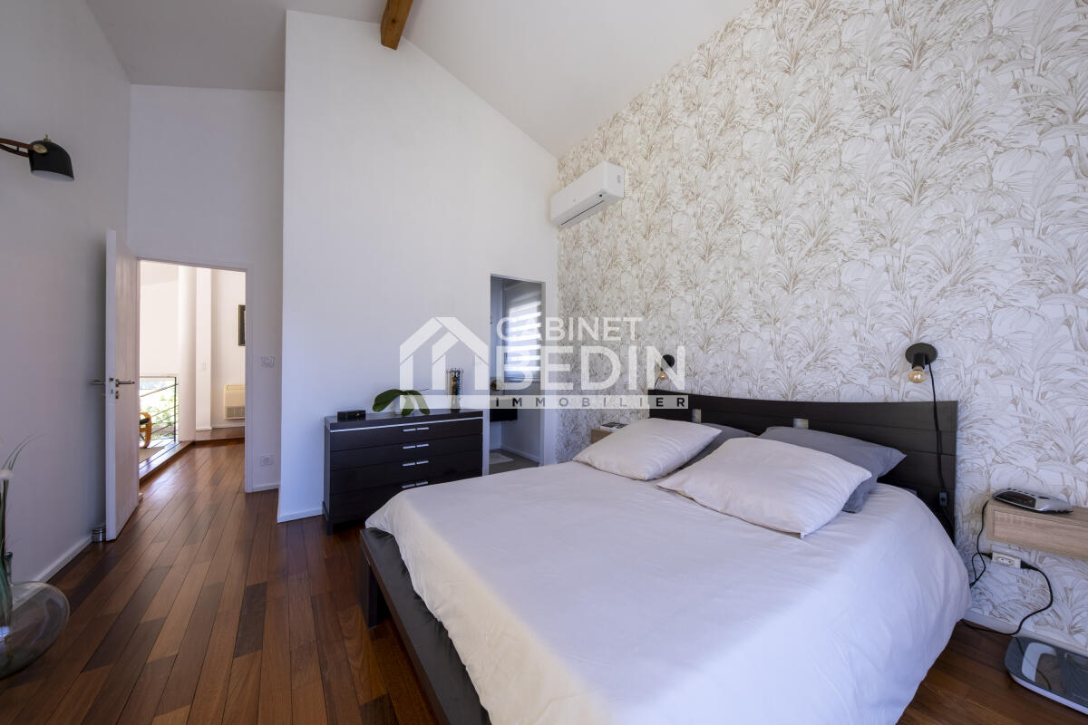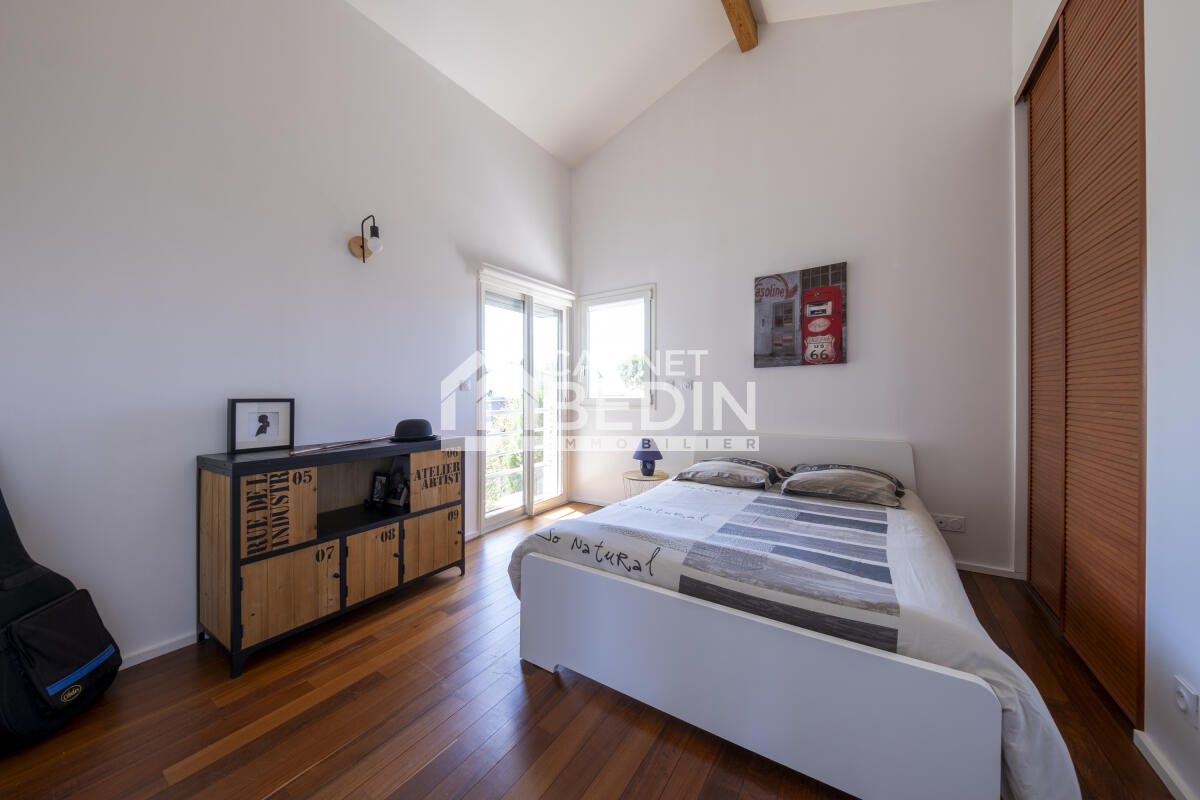 Exclusivité CABINET BEDIN - TOURNEFEUILLE - VILLA D'ARCHITECTE CONTEMPORAINE. Située dans une impasse privée, à proximité du lac de la Ramée, cette villa d'architecte aux lignes épurées séduira les amateurs de volumes et de modernité. D'une surface généreuse, elle offre une pièce de vie de 70 m², baignée de lumière, avec une cuisine moderne ouverte sur une vaste salle à manger, un espace idéal pour recevoir et partager.
