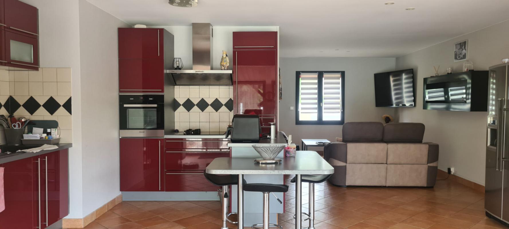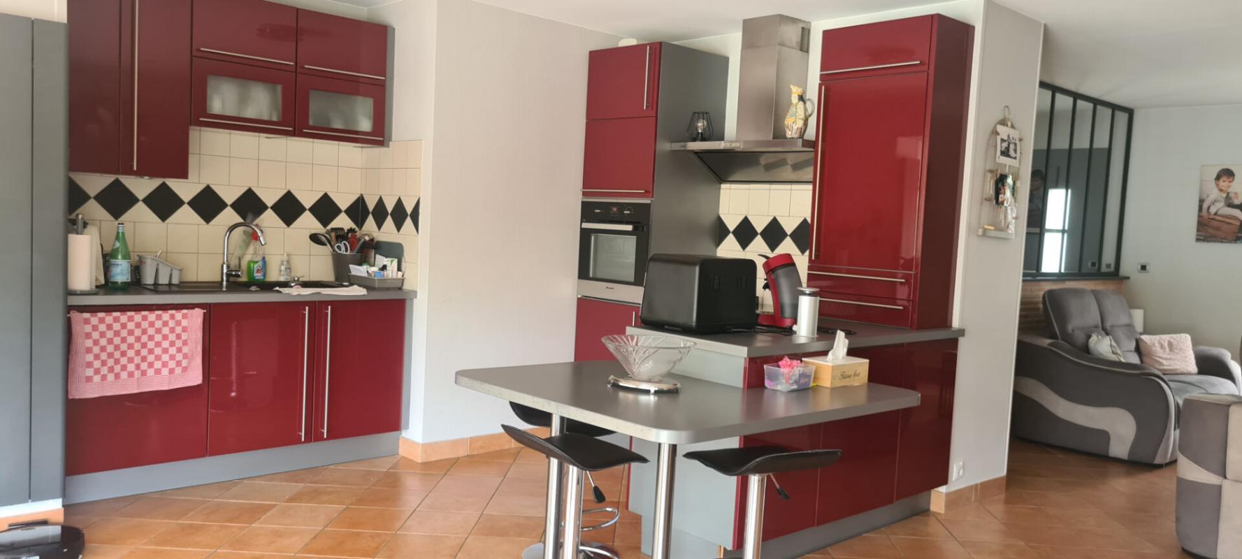 A l'intérieur, la maison séduit par sa luminosité et ses volumes généreux. Elle se compose d'un hall d'entrée ouvert sur une magnifique pièce de vie, un salon et une cuisine ouverte aménagée et équipée (plaque gaz et induction, hotte, four, lave-vaisselle), donnant sur une extension lumineuse de 28 m².