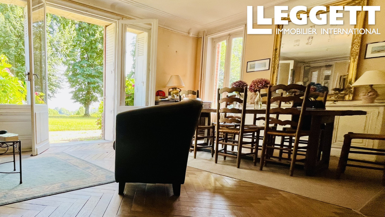 Anciens grands communs du château d'Aguesseau, cette demeure familiale comprend 12 chambres sur 419 m² habitables. Deux ailes anciennes avec façades en pierres ouvragées encadrent un imposant pavillon central en briques, offrant une belle symétrie architecturale.