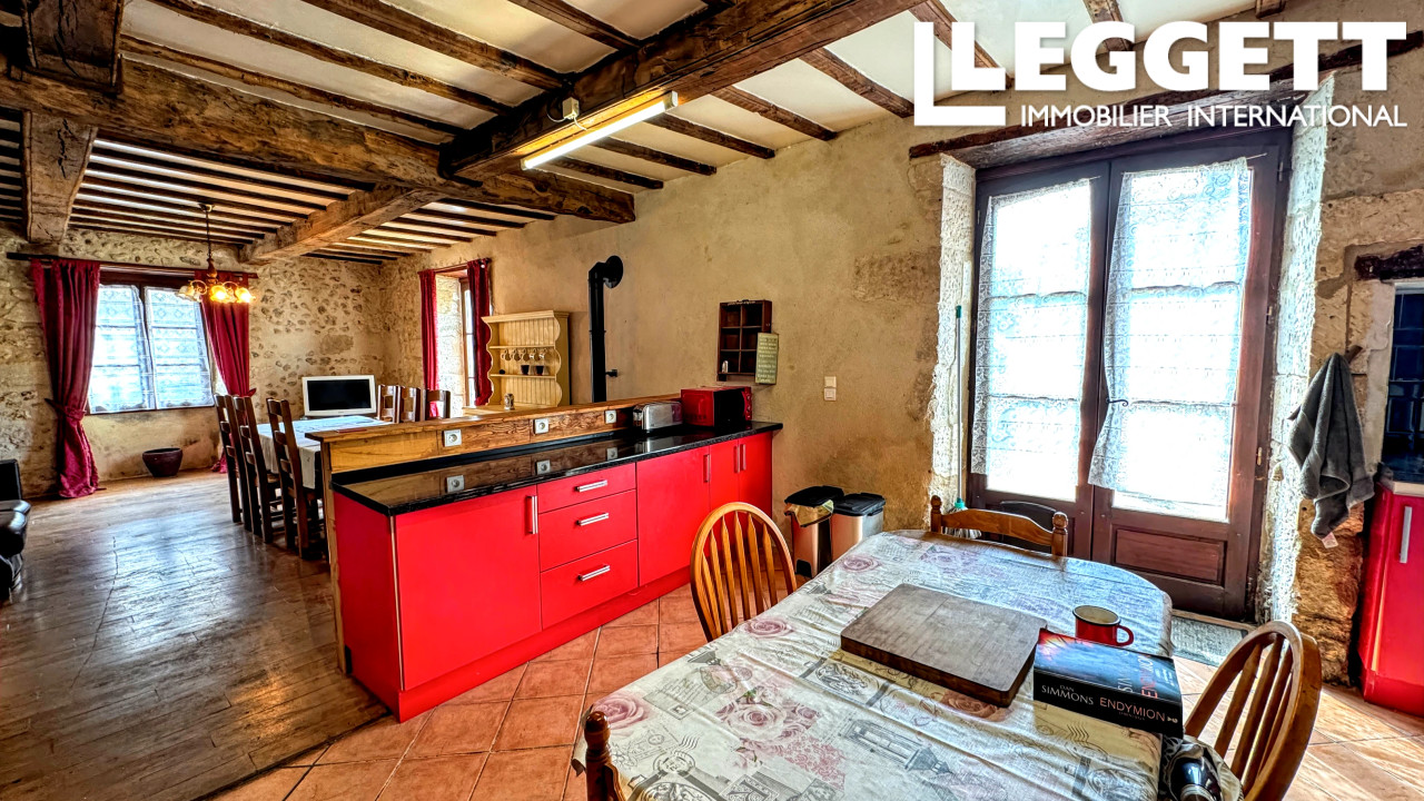 A39527SHH16 - Cette propriété de quatre chambres magnifiquement restaurée, datant des années 1600, est idéalement située au coeur de la ville animée de Saint-Séverin, à la frontière entre la Charente et la Dordogne. Avec ses murs en pierres apparentes, ses parquets d'origine et son double vitrage partout, la maison allie harmonieusement le caractère historique et le confort moderne.
