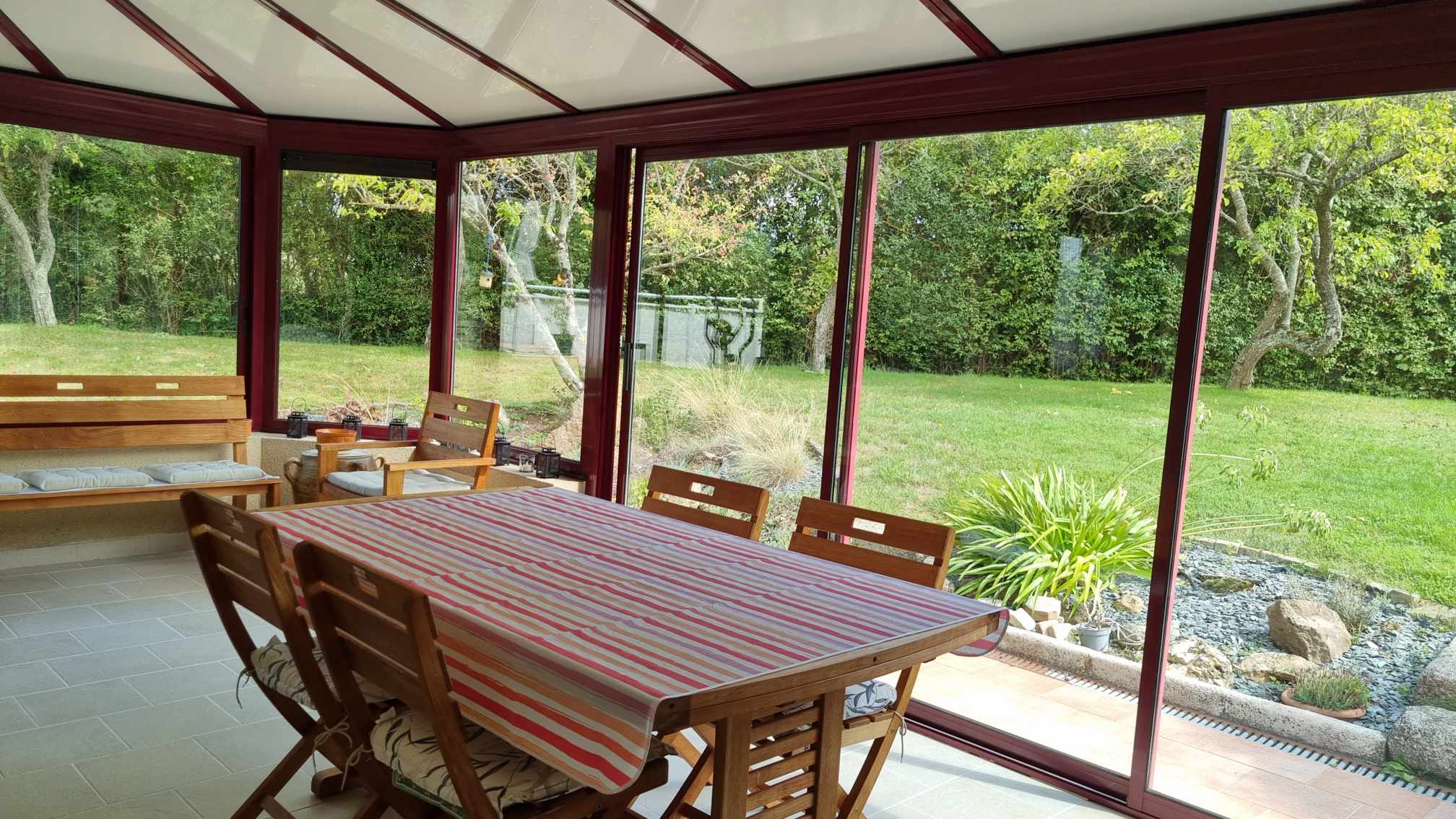 L'extérieur ne manque pas d'atouts : Terrain clos et arboré de 1 500 m2, sans vis-à-vis, piscine hors-sol avec terrasse, Terrain de pétanque, Espace parking privatif.