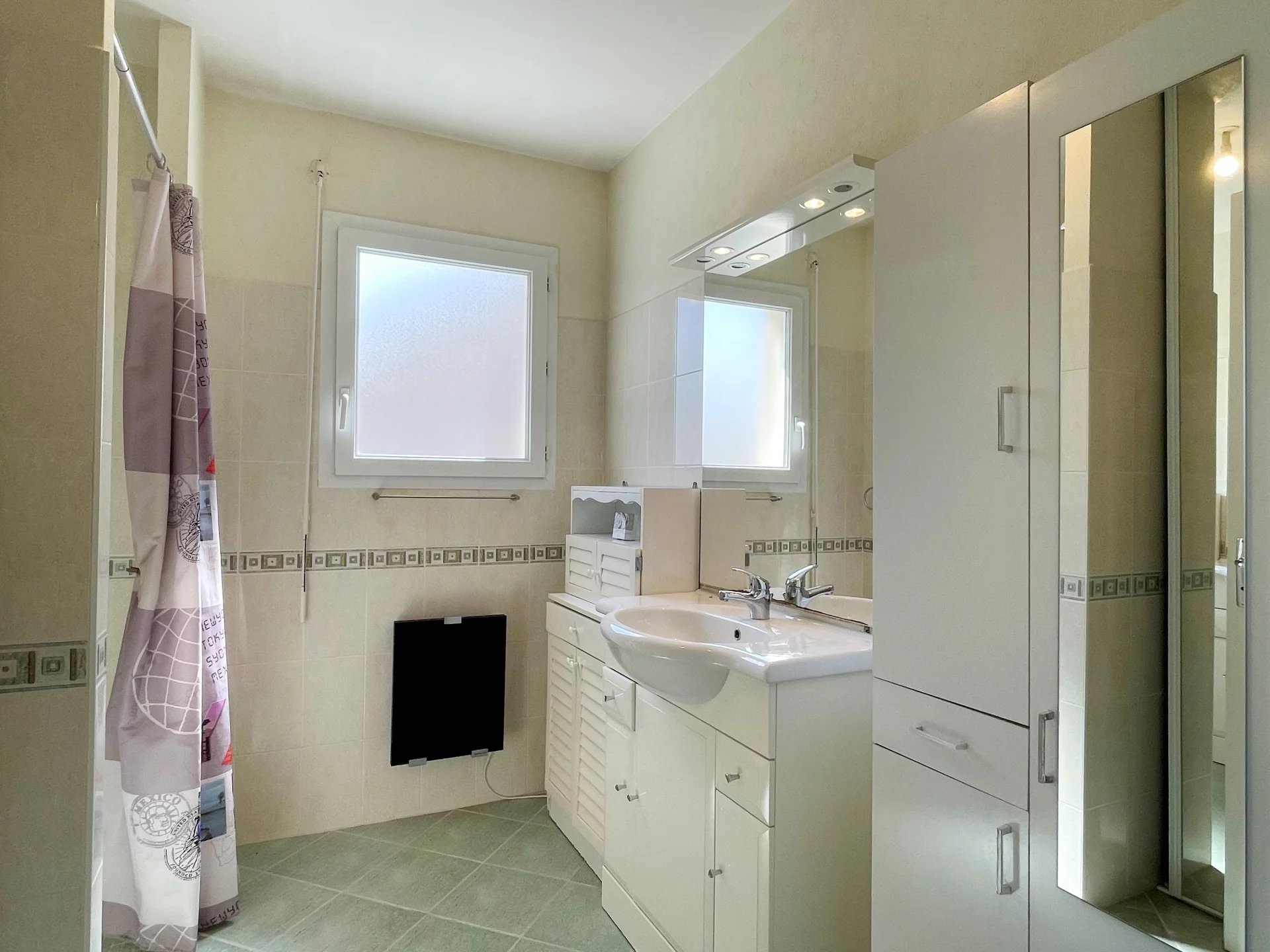 En excellent état, ce bien offre des prestations modernes, fonctionnelles et économes en énergie : isolation performante, chauffage au sol par pompe à chaleur, accessibilité PMR intégrale.