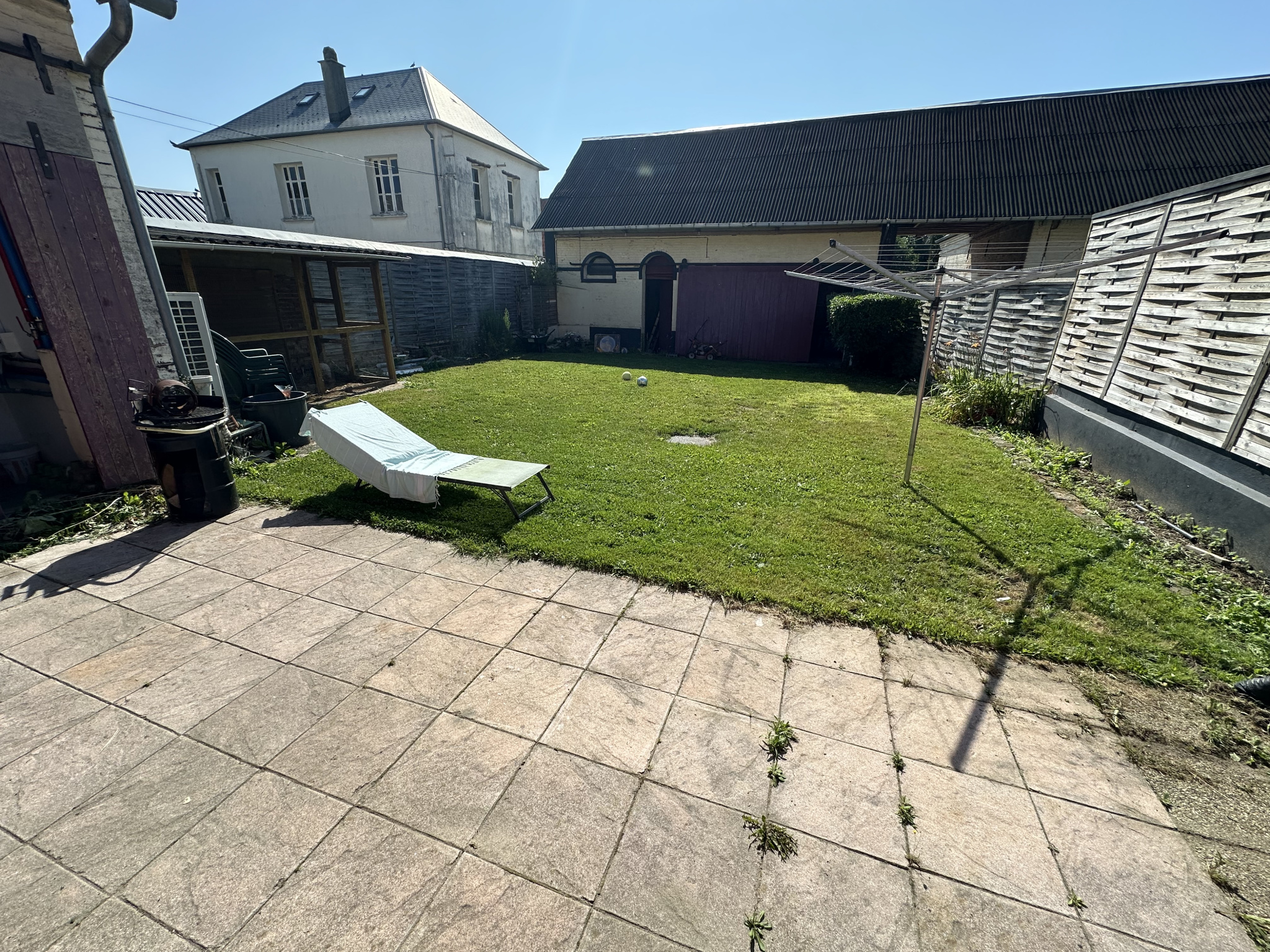 à l'extérieur : un grand garage, une terrasse, dépendance un petit espace en gazon le tout sur une parcelle de 395 m2, (quelques travaux de finition sont à prévoir.)