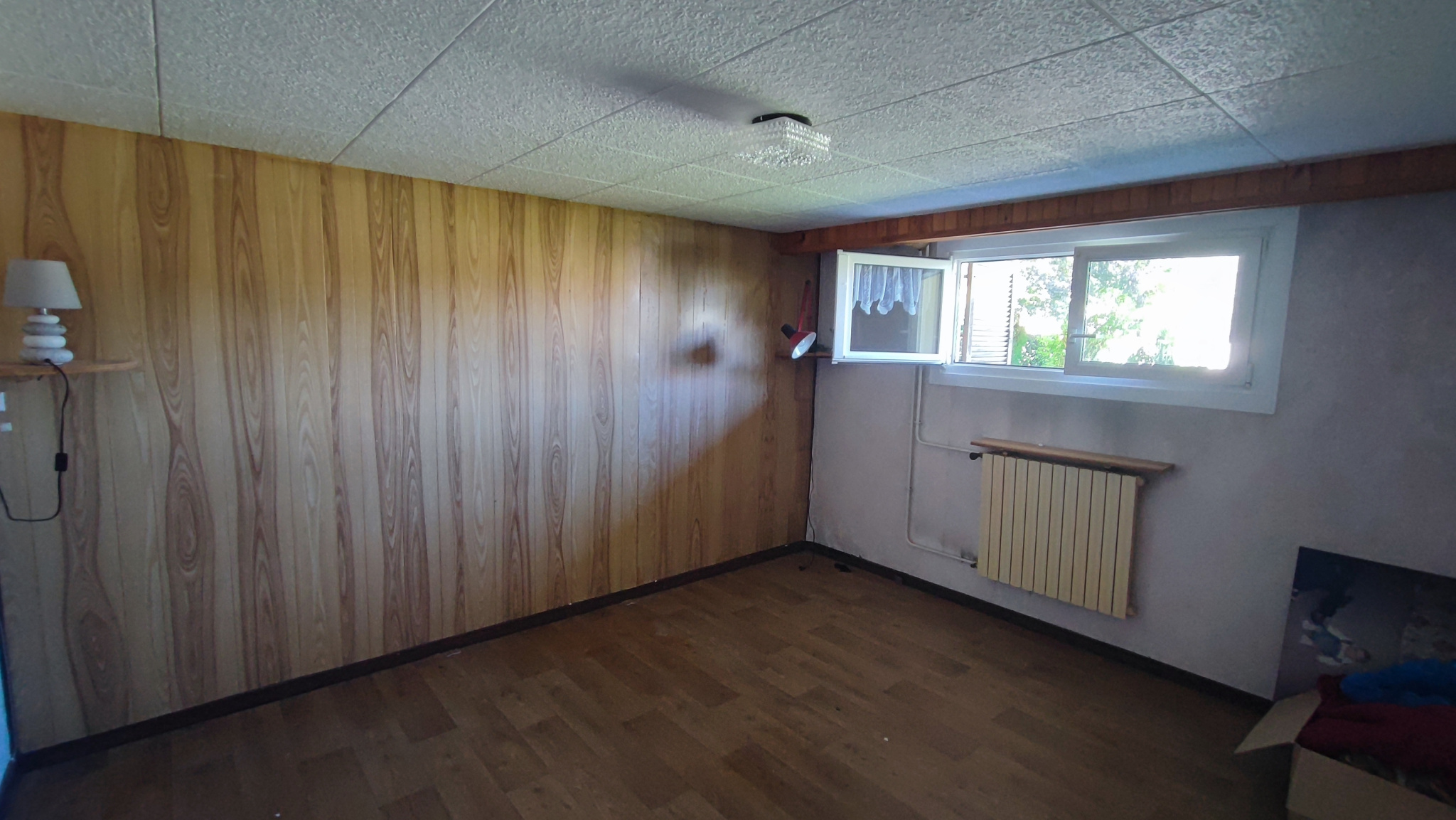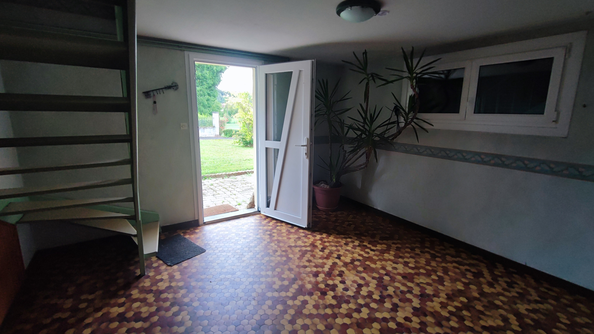 Rez-de-jardin : Hall d'entrée - 1 Chambre - Accès chaufferie et garage.