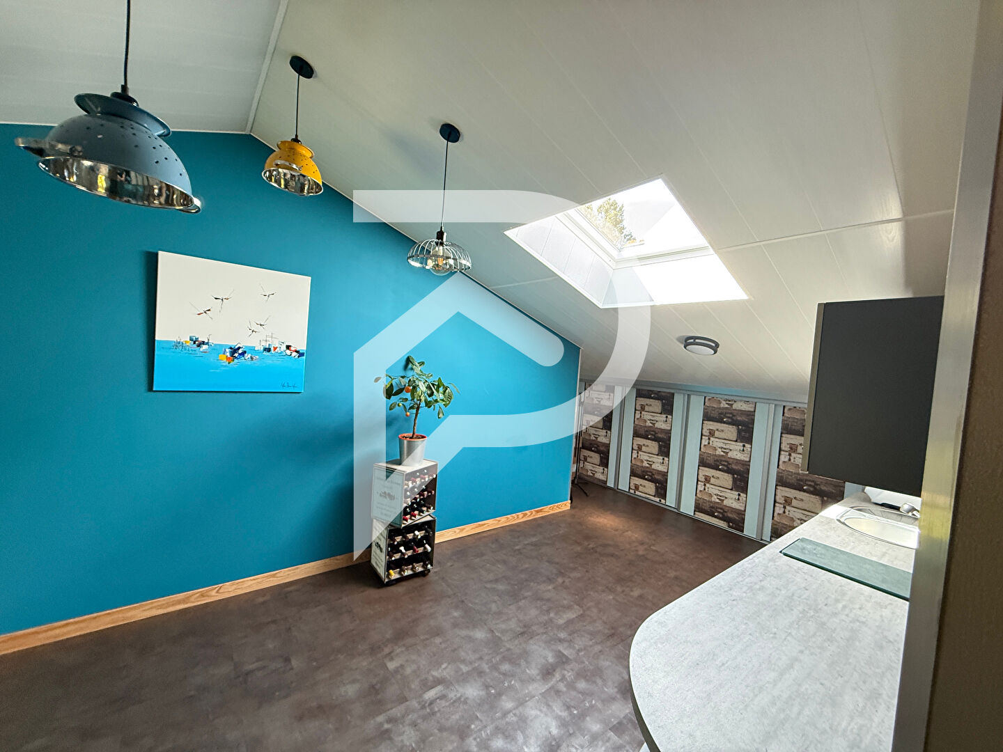 À l'étage, la maison propose une seconde cuisine, un séjour chaleureux agrémenté d'un poêle à bois, trois chambres spacieuses, une salle de bain et un WC indépendant.