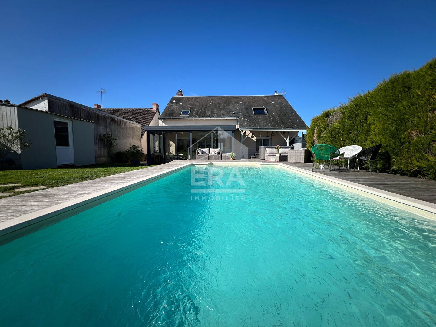 A vendre à Villedieu Sur Indre dans un quartier calme et résidentiel, et à 2 mns du golf, jolie maison restaurée avec volumes généreux.