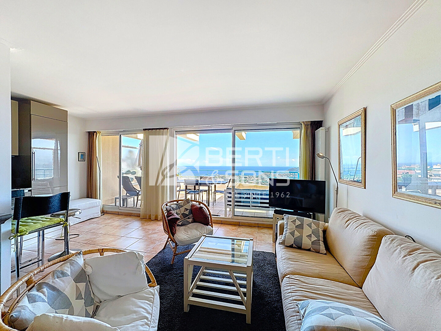 Le tout ouvrant sur une belle terrasse exposée sud/sud-est avec vue panoramique mer et massif de l'Esterel.