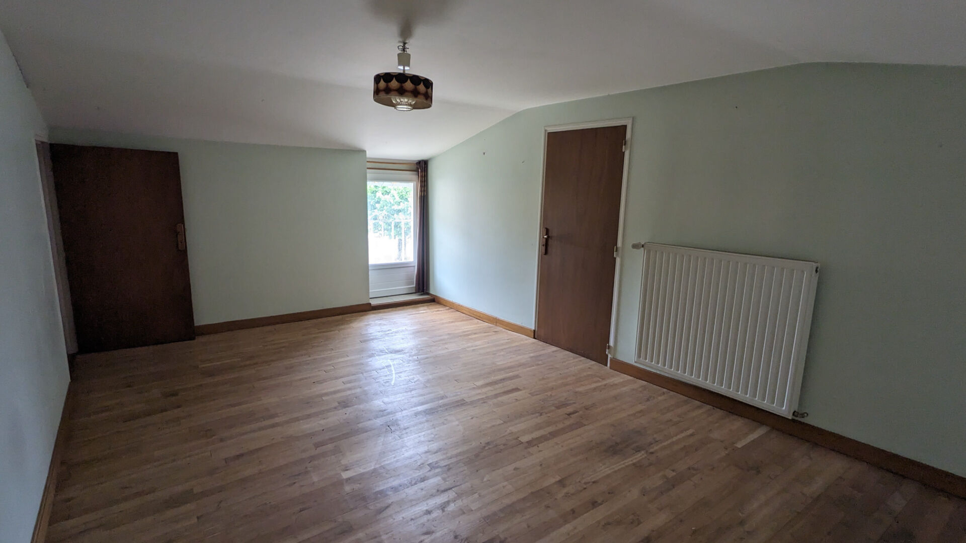 À l'étage, un palier dessert deux grandes chambres lumineuses, une salle de bains avec toilettes et un grenier offrant des possibilités supplémentaires.