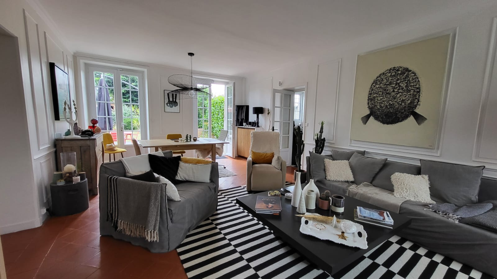 Très jolie maison ancienne rénovée traversante de 170 m² au sol environ , lumineuse, au calme offrant de beaux espaces intérieurs et extérieurs :